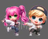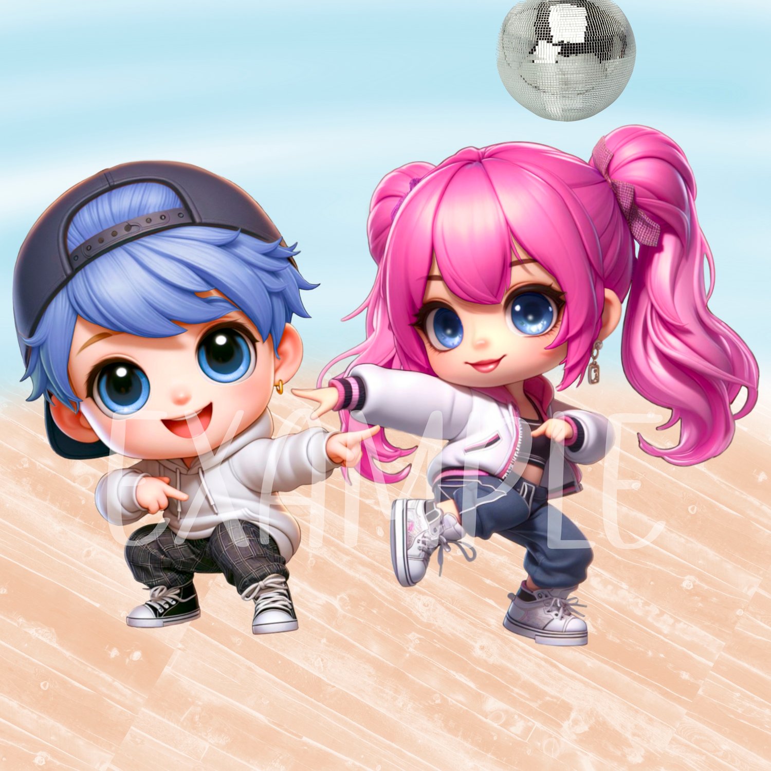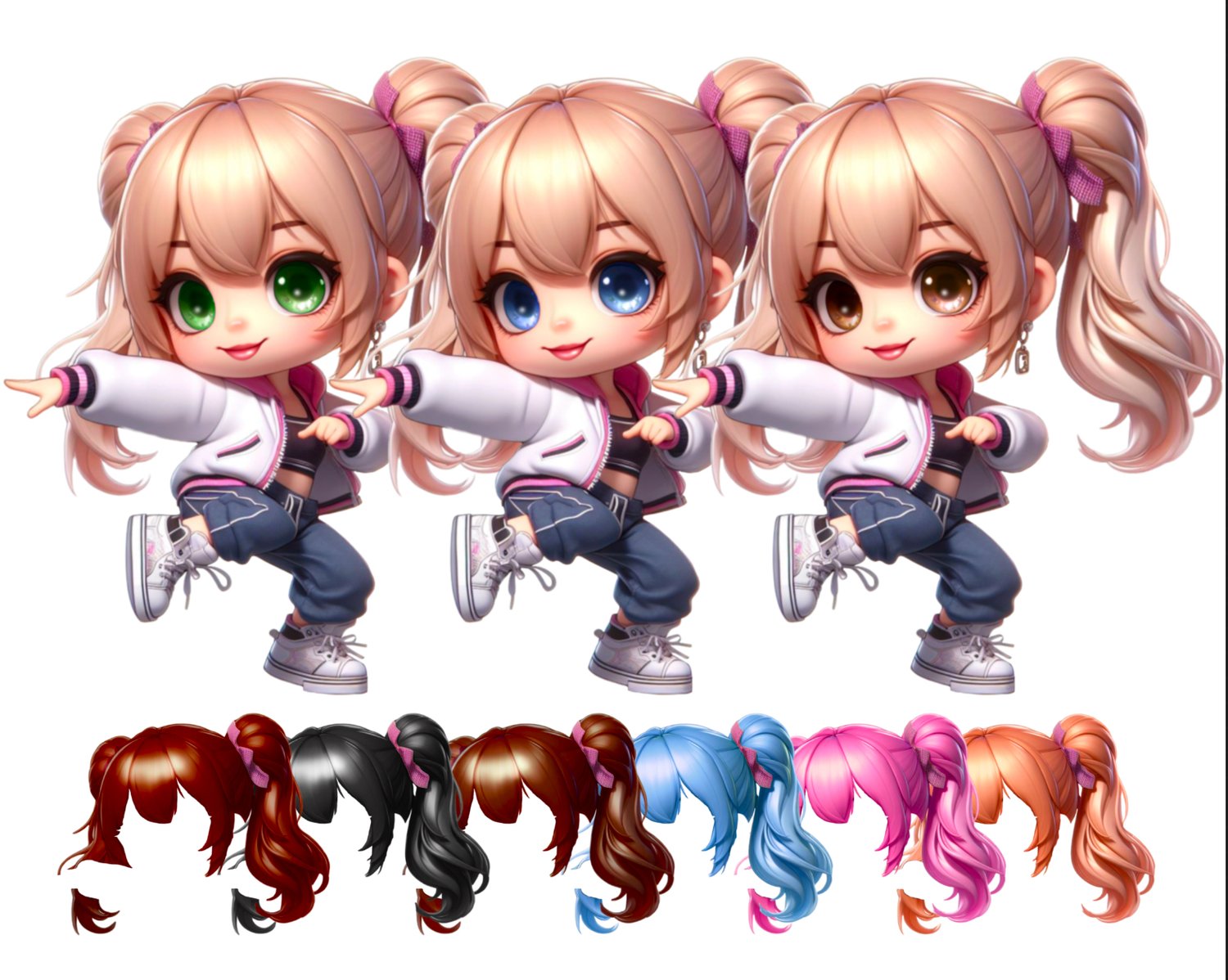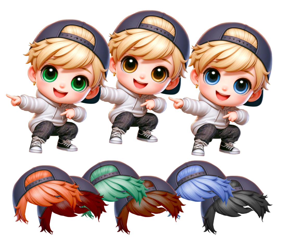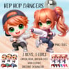 Super cute hip hop/Streetdance Chibi doll dancers. 3 boys, 3 girls; choice of eye colour. hair clipart. Sublimation, print. Instant download