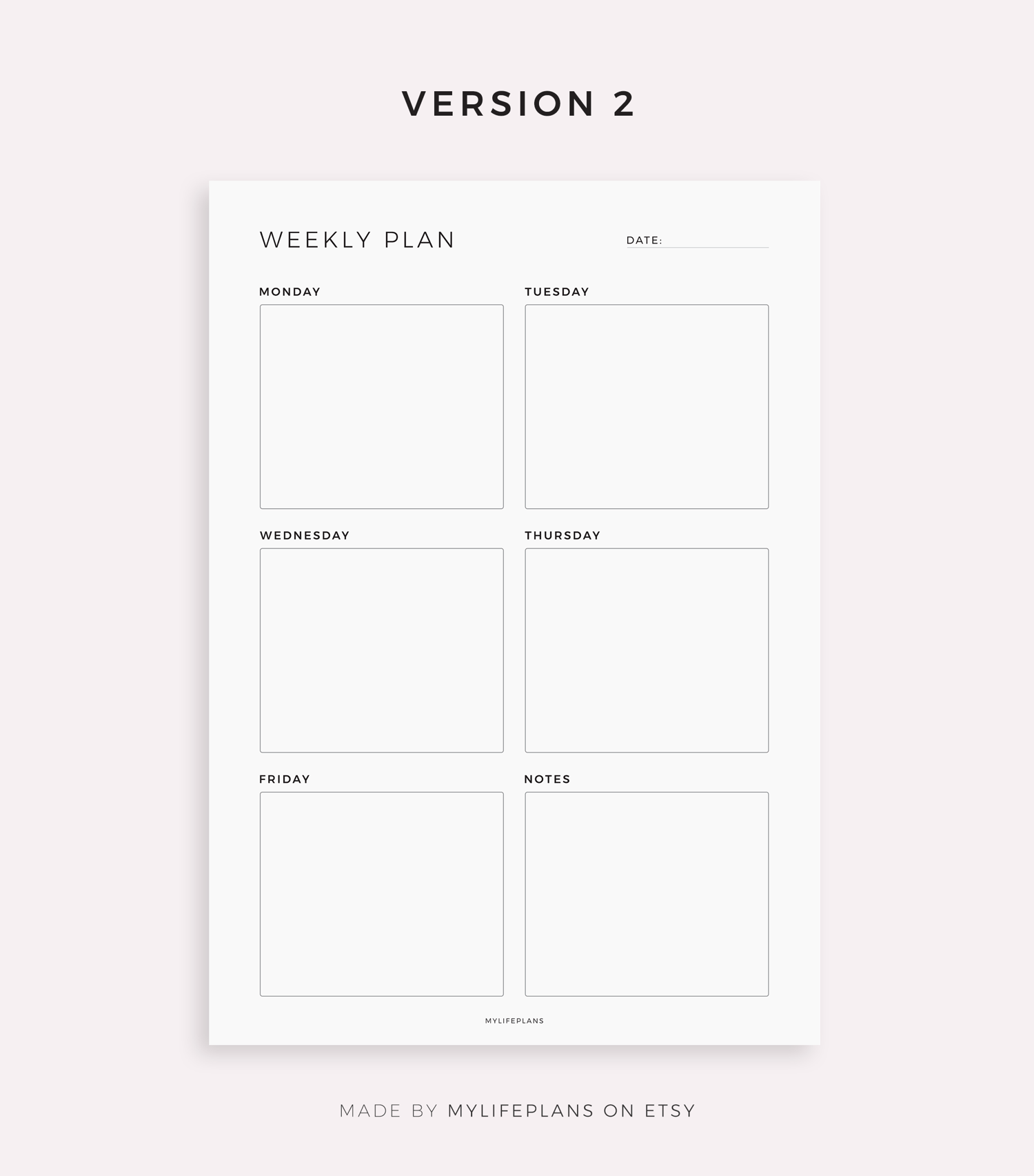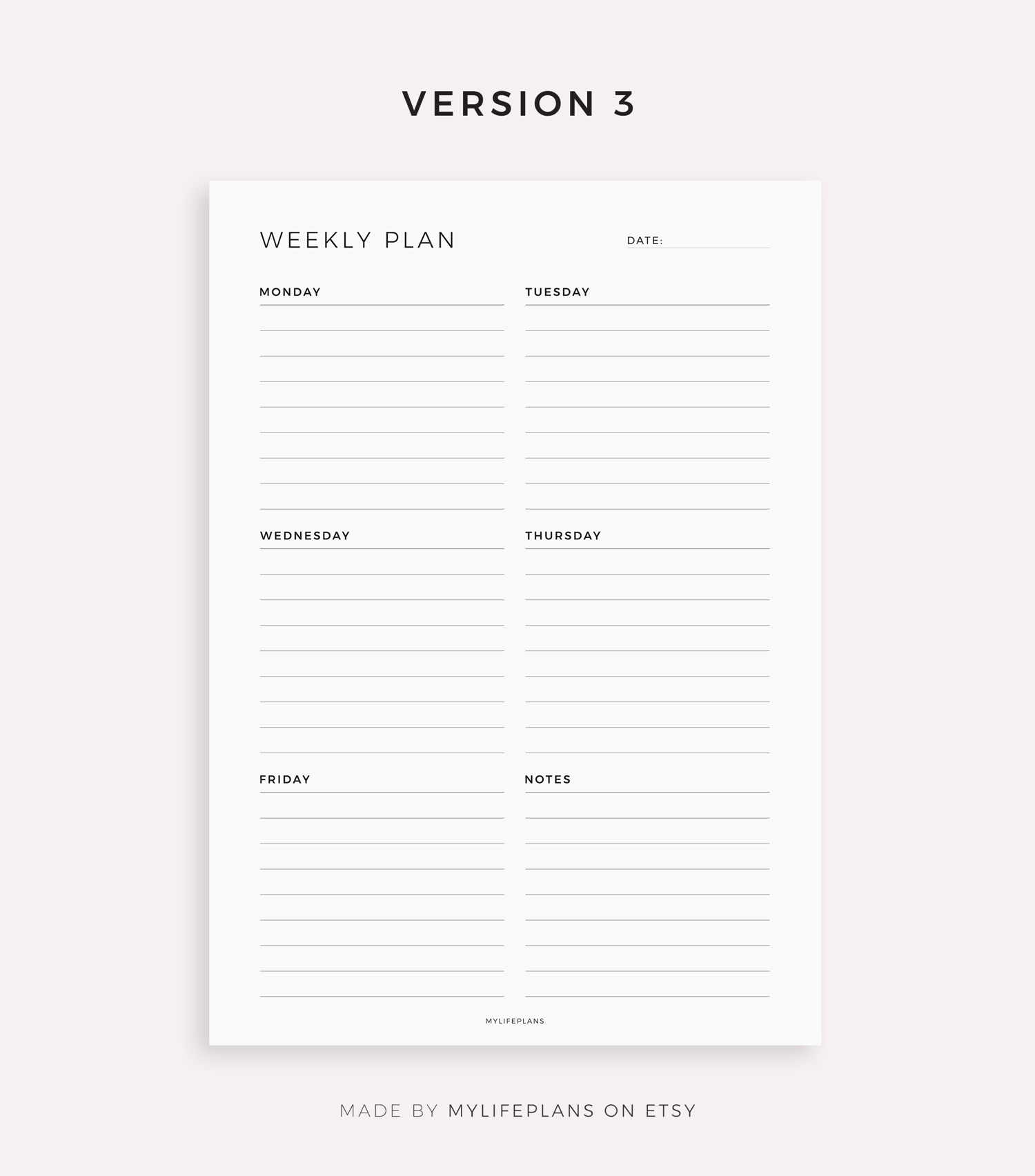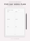 Five Day Weekly Planner for Remarkable, Supernote, Kindle Scribe, Boox, Kobo