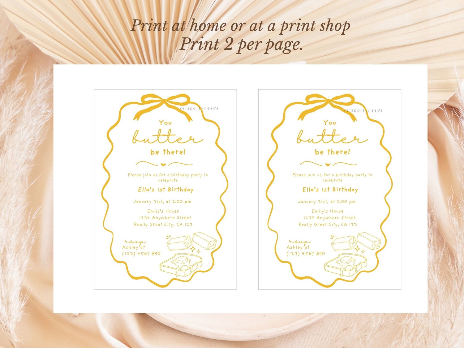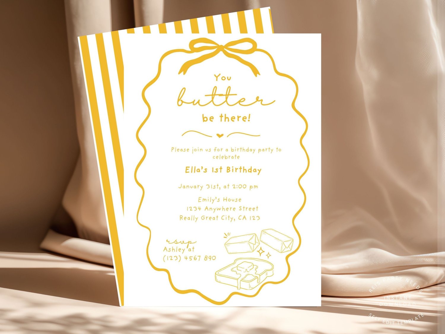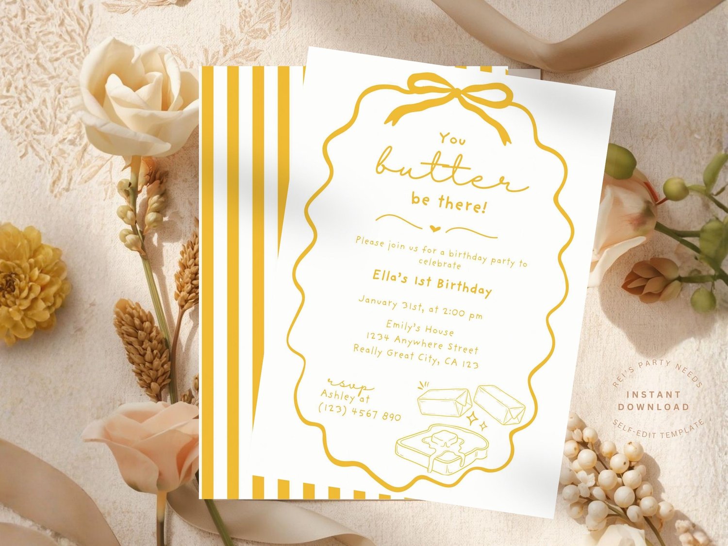 Butter Birthday Invite | Whimsical Butter Theme Party Invitation | Digital Download