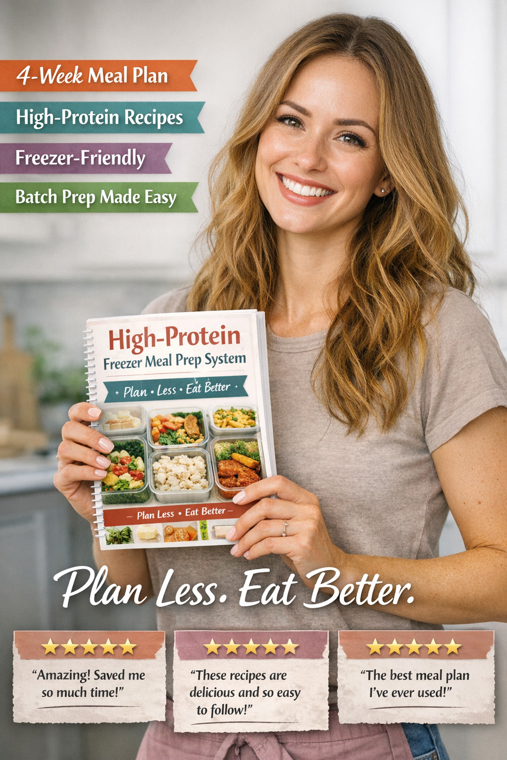 This High-Protein Freezer Meal Prep System is a clean, easy-to-follow digital PDF designed to simplify your weekly food routine.