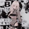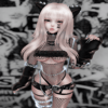 spiked top, body chain, panties, wolfcut hair/bangs: saikura