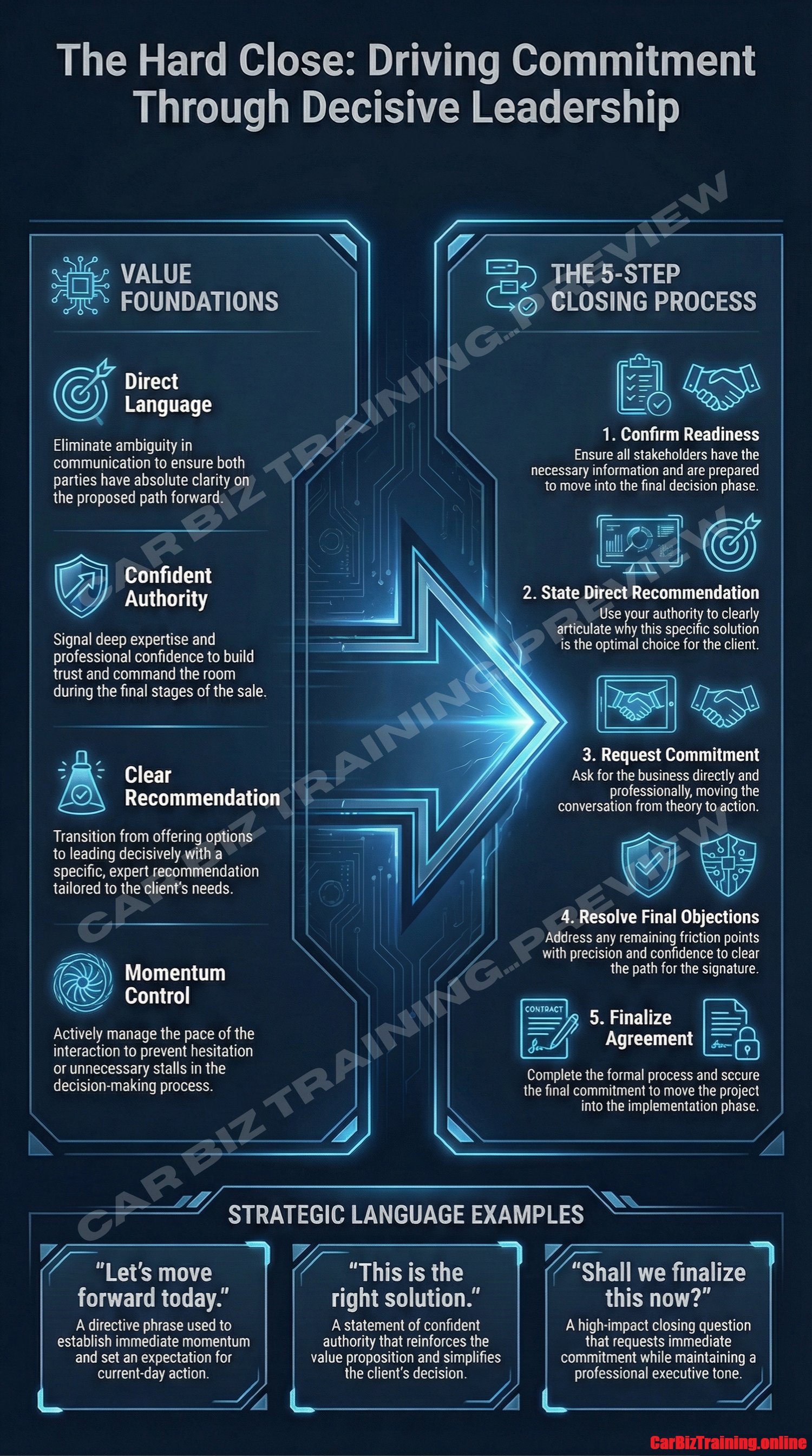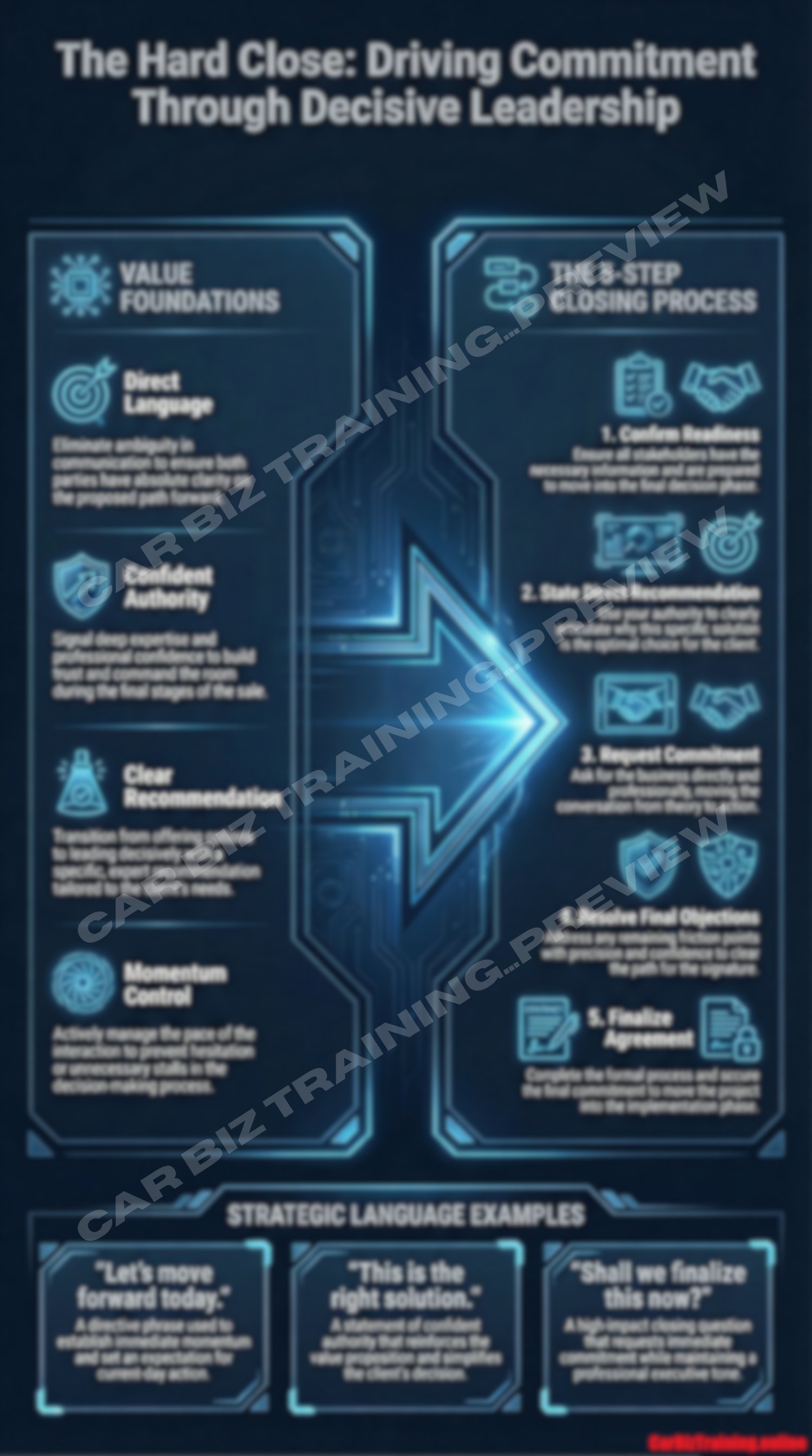The Hard Close Framework provides professional language and structure to confidently move committed buyers into a clear decision without sounding aggressive or desperate.
