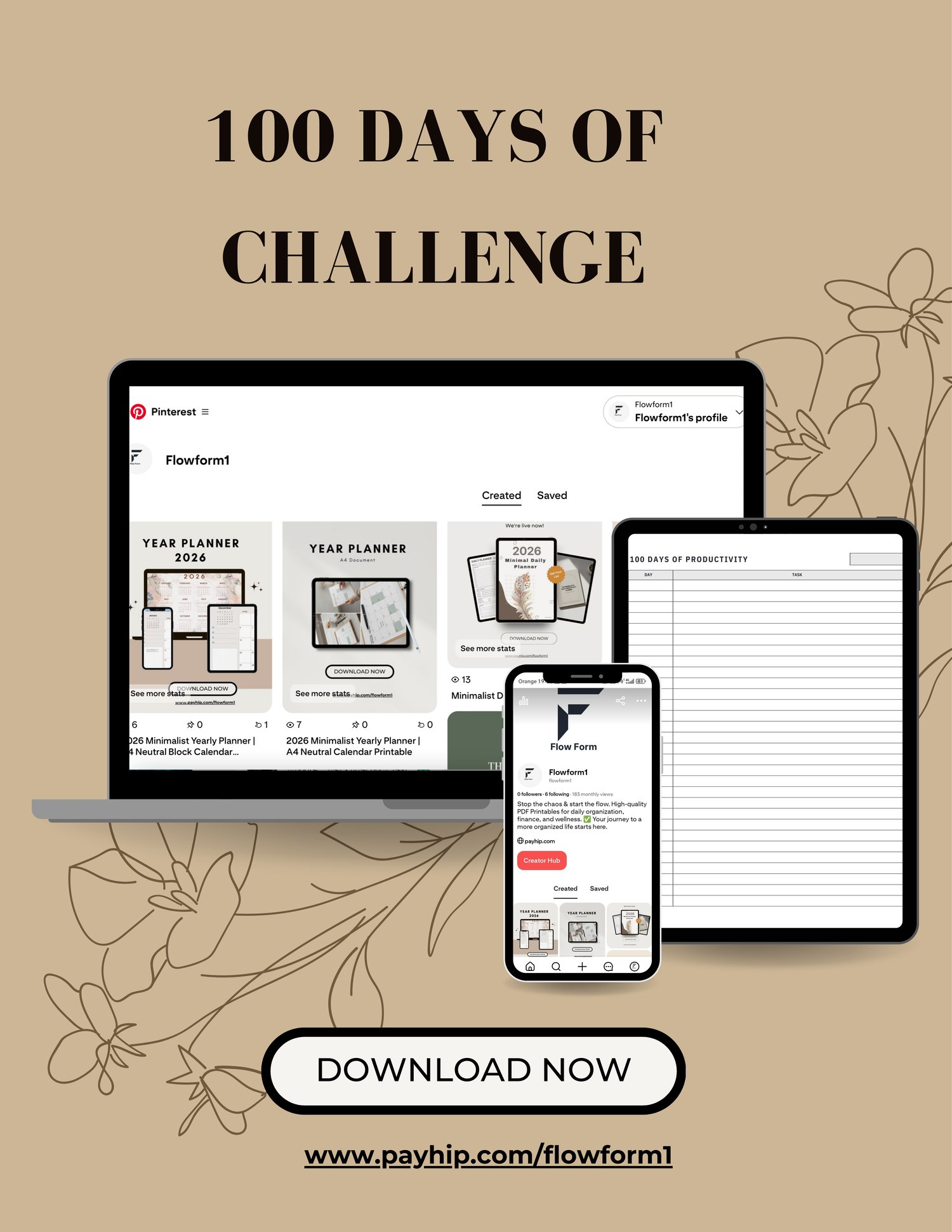 Whether you are starting a fitness journey, learning a new skill, or committed to a daily habit, this Minimalist 100-Day Challenge Tracker is the perfect visual tool to keep you accountable. Designed with a clean, neutral aesthetic, it fits perfectly in any office or home environment.