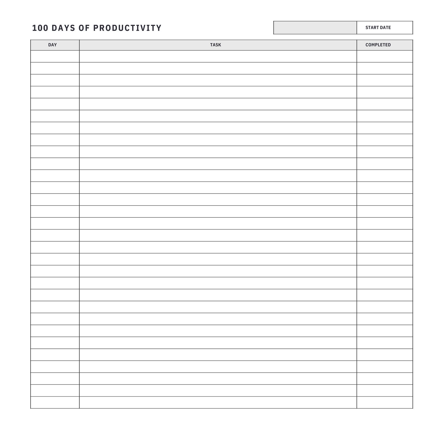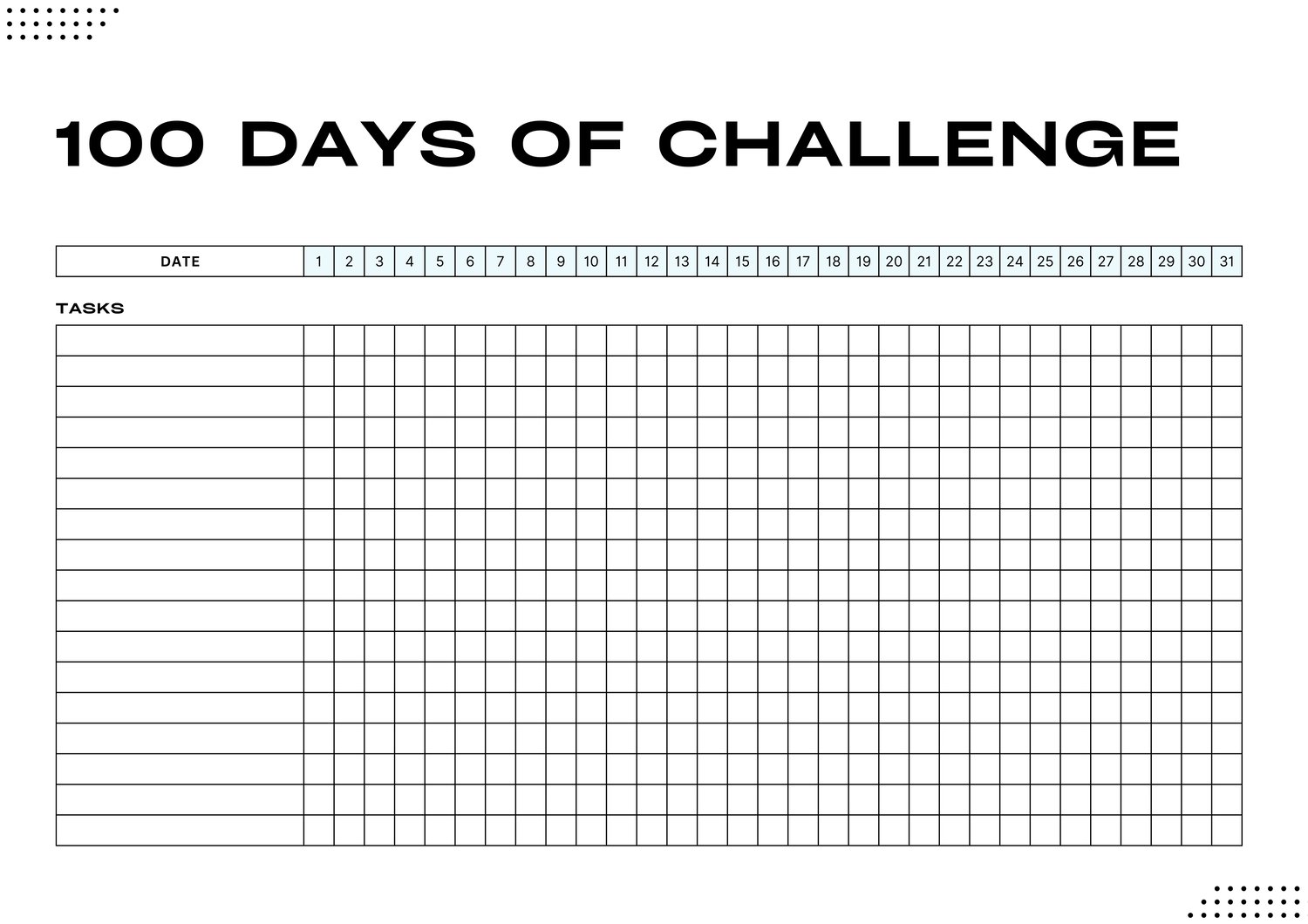 Ideas for use: 100 Days of Movement, 100 Days of No-Spend, 100 Days of Coding, 100 Days of Gratitude.