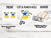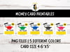 ❸ Print (best on cardstock paper) → Cut → Hole punch → Roll money & adhere plastic money pouch to card