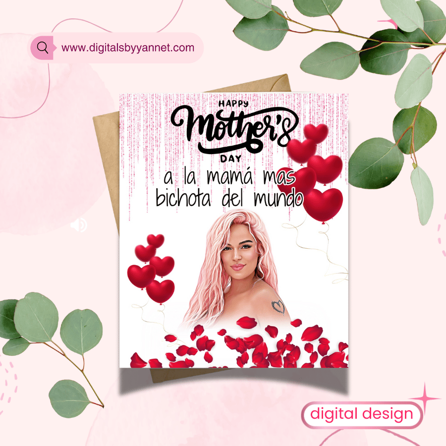 Bichota Mother's Day Printable Spanish Card / png card design / Reguetton Music Fan Graduation Card