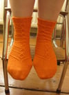 My friend Stefanie asked for some bright orange socks for her birthday. I was free to design what I wanted to knit and had fun with some small cables.