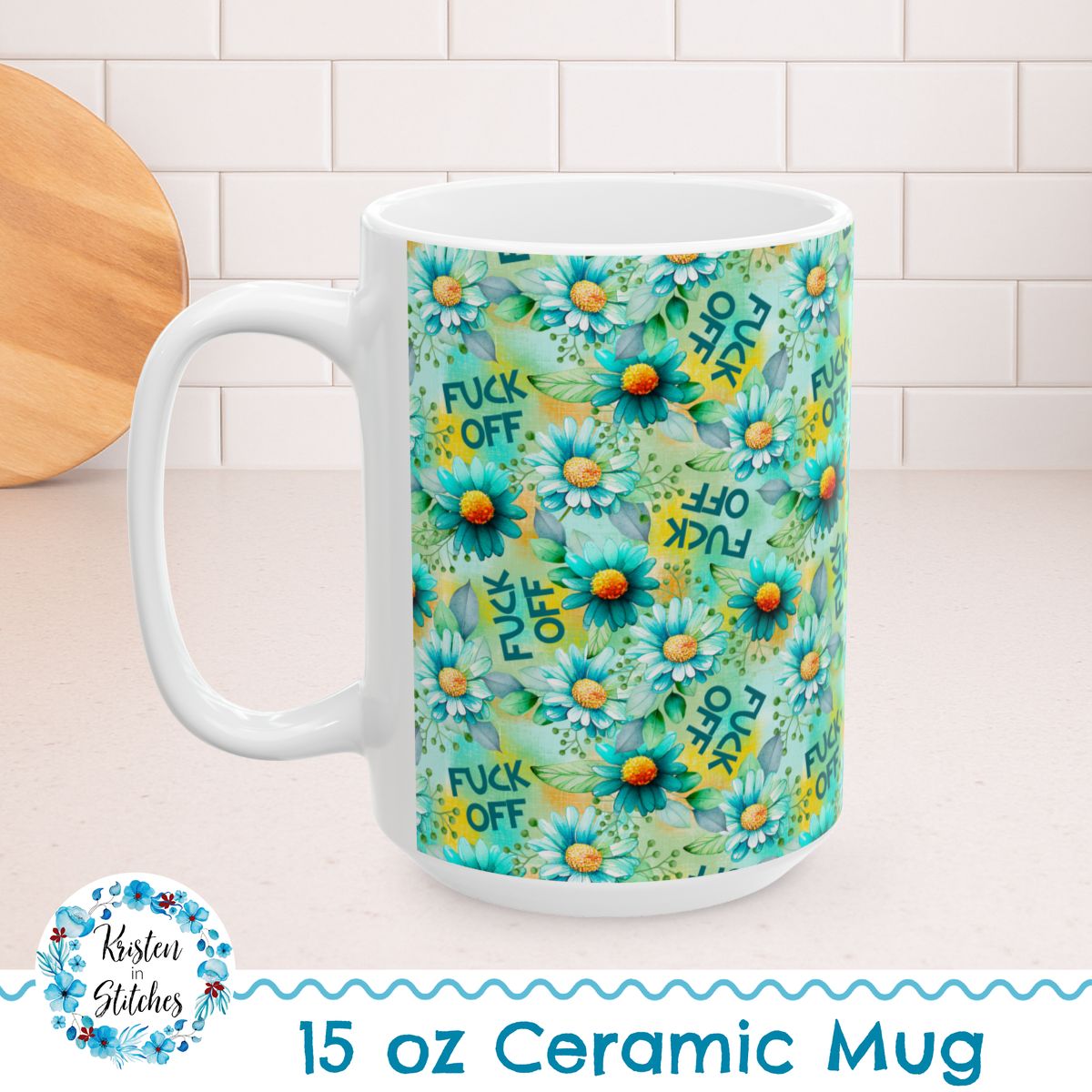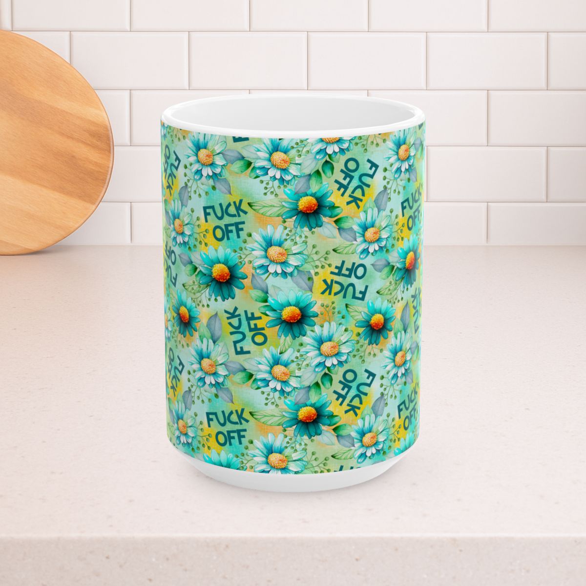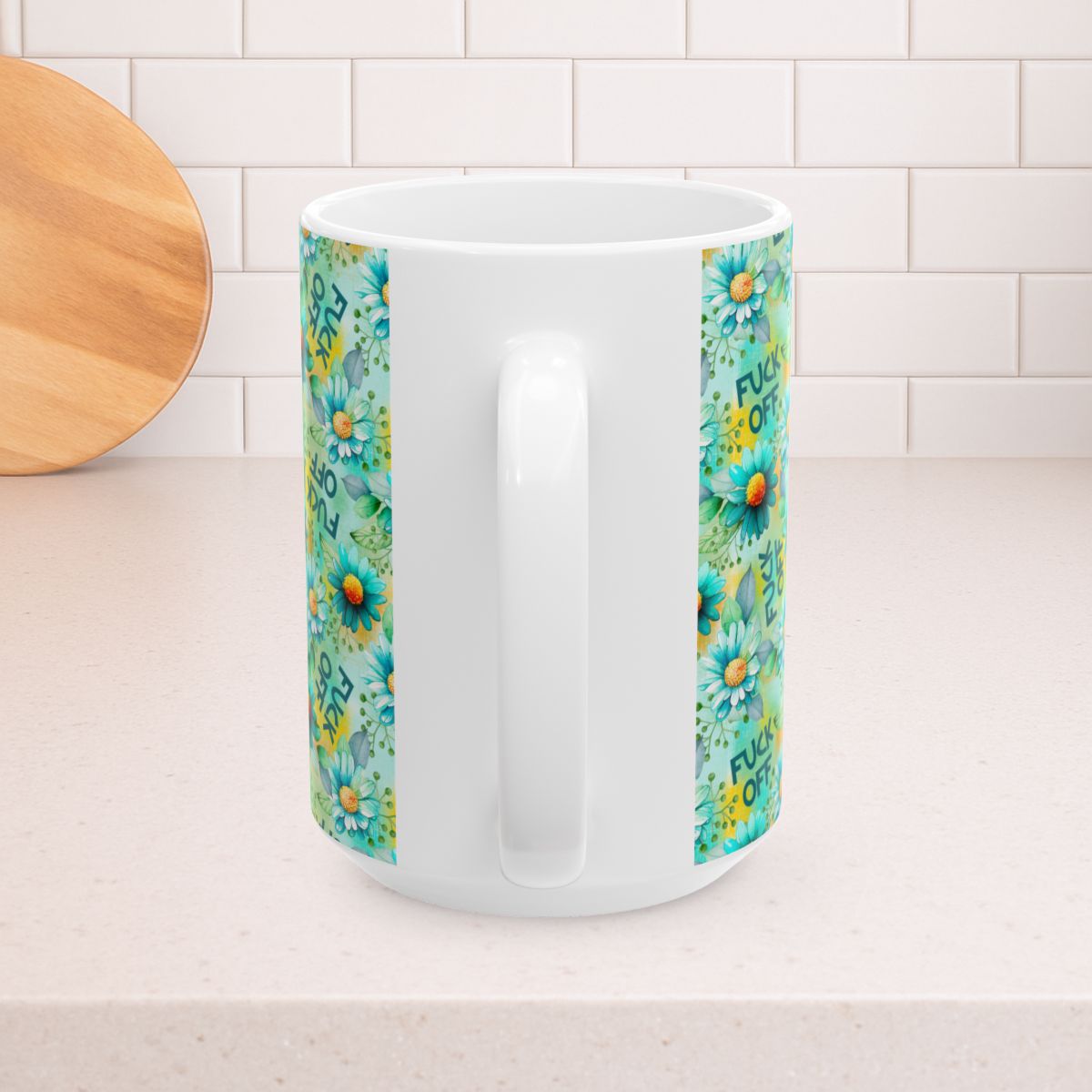 Fuck Off Floral 15oz Ceramic Mug, Large Coffee Cup, Swear Words, Pretty Profanities