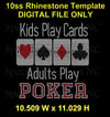 Kids Play Cards, Adults Play POKER Rhinestone Template: Elegant Design for Crafting Unique, Sparkling Card Game Apparel and Accessories
