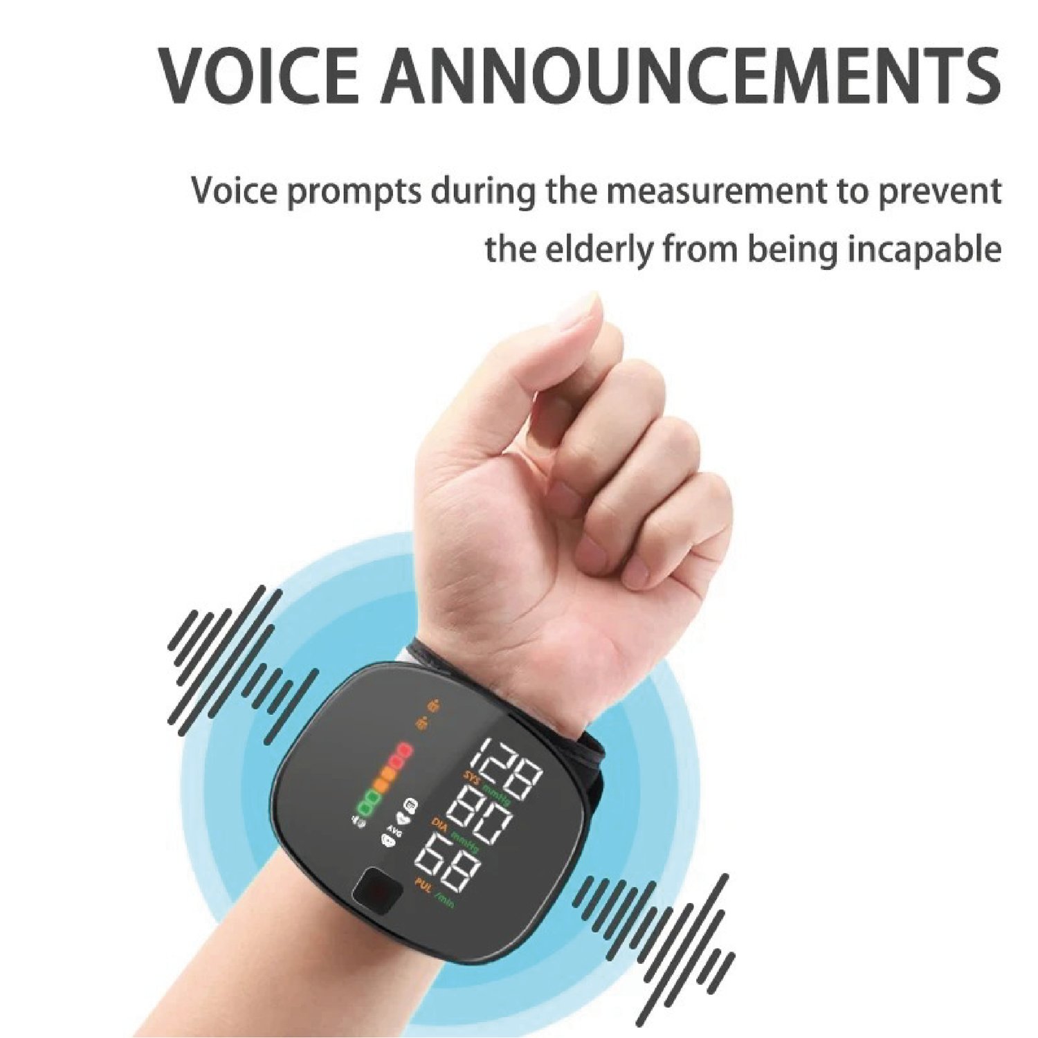 Tensiomètre au poignet aste à LED,suivi cardiaque, annonce vocale des résultats