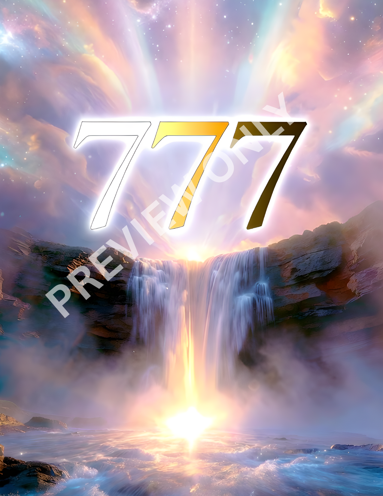 Description: This is your sign. Angel number 777 in rainbow light means miracles, blessings, and divine grace are pouring into your life like a waterfall.