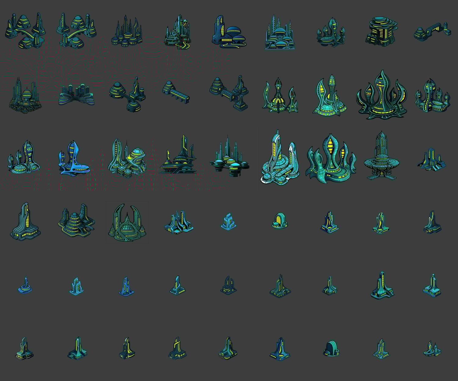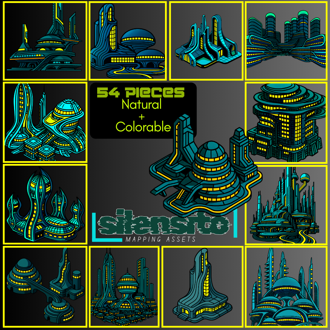 - 54 pieces of advanced structures, including towers, complexes, hubs, and large-scale civic buildings.