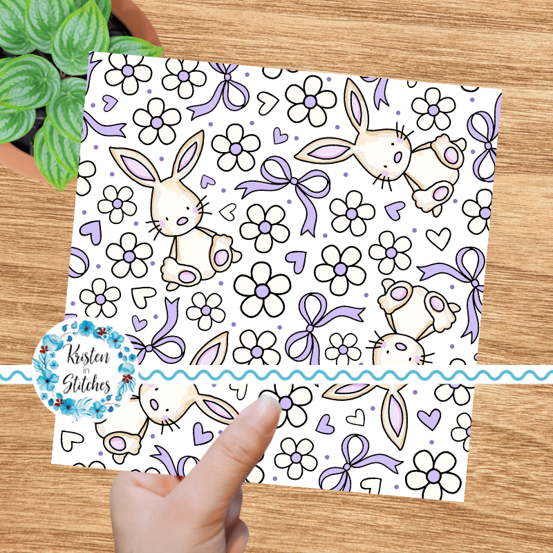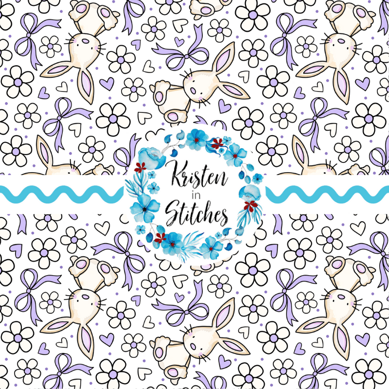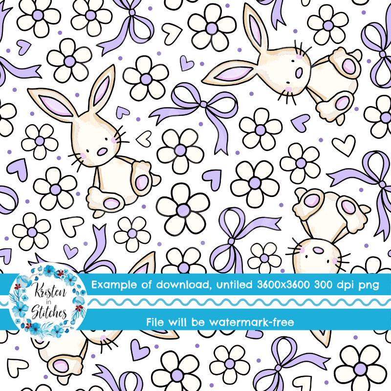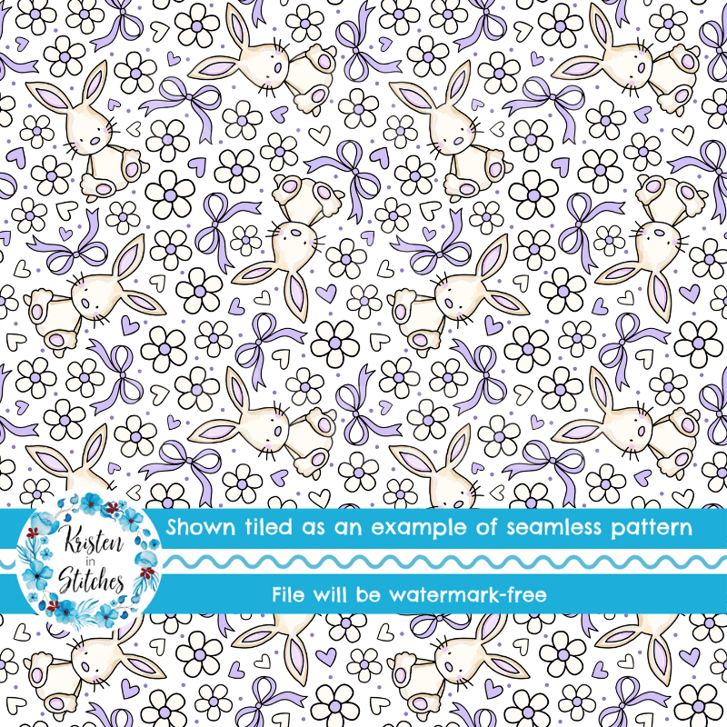 Spring Bunnies and Bows Seamless Pattern, Easter Bunny Rabbit in Lavender