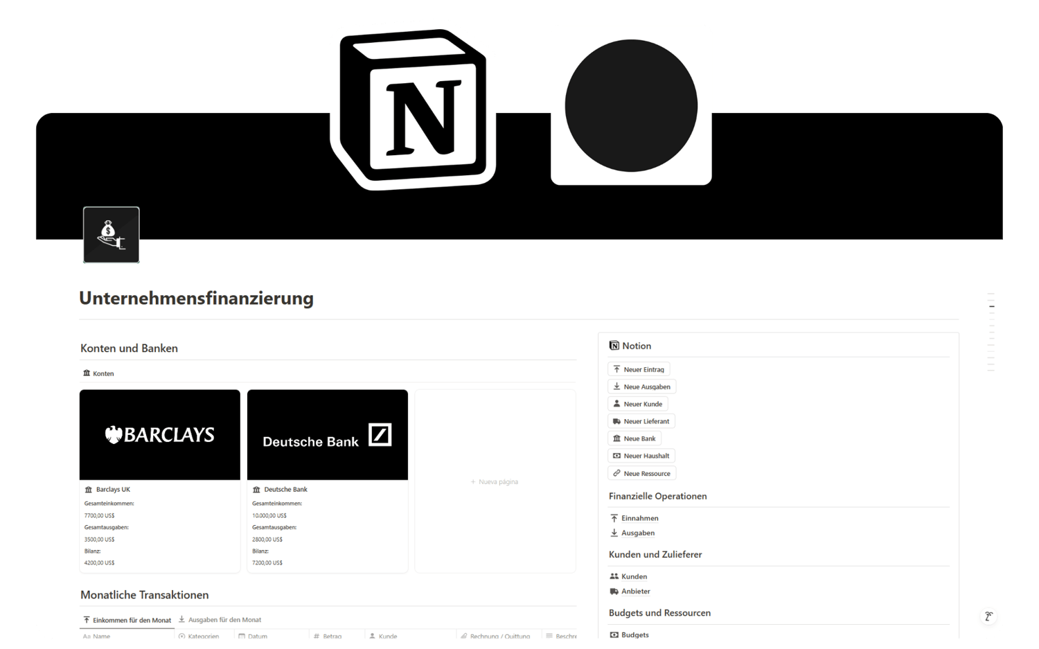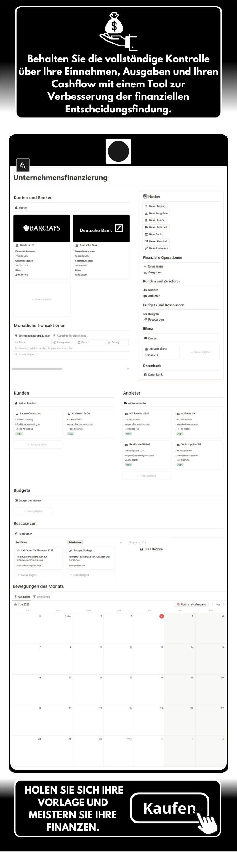 Behalte deine Unternehmensfinanzen klar und präzise im Blick mit der Notion-Vorlage „Unternehmensfinanzen“. Entwickelt für Unternehmer:innen, Freelancer und Teams, die ihren Geldfluss tiefgreifend verstehen wollen – strukturiert, übersichtlich und leicht zugänglich.