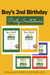 Printable Boy's 2nd Birthday Invitation With Tractor | Boy's 2nd Birthday Invite With Tractor | Bonus Matching Thank You Notes