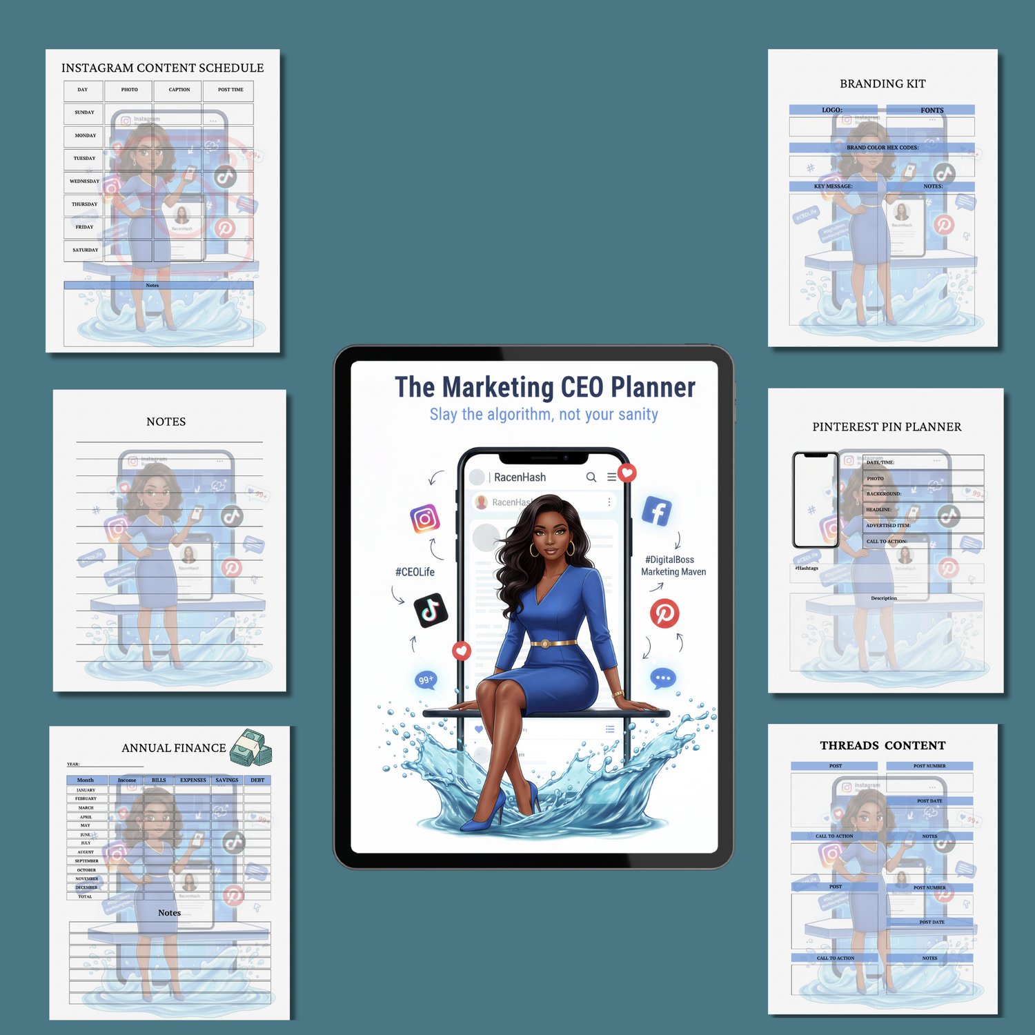 Run your business like a true CEO with this Marketing CEO Planner Bundle, a complete digital planning system designed for small business owners, digital creators, product sellers, Etsy sellers, service providers, and CEOs who want clarity, structure, and strategic organization.