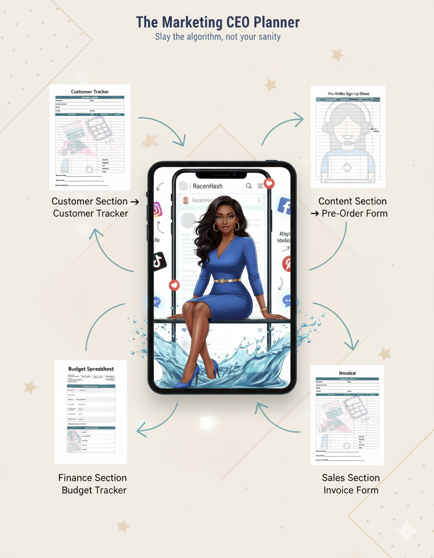 This system was designed to elevate your entire business workflow—your marketing strategy, your content planning, your customer management, your pricing, your product inventory, and your daily CEO mindset.