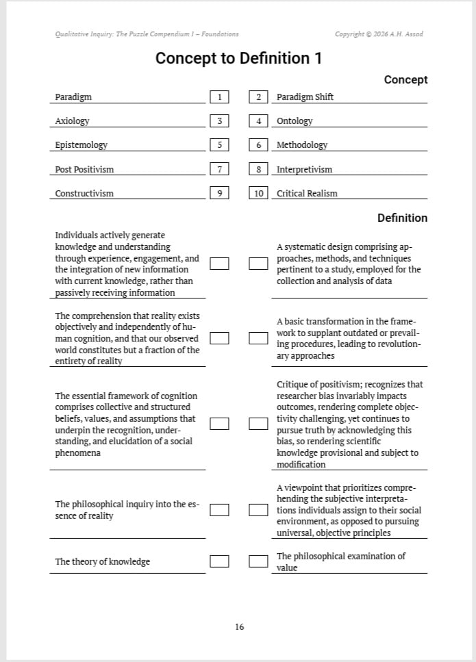 Qualitative Inquiry: The Puzzle Compendium I - Foundations