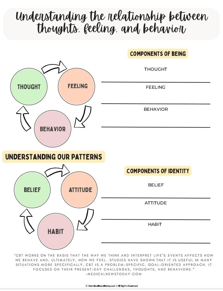 · Cognitive Behavioral Therapy (CBT) Model Worksheets: Visually map out how your thoughts create your feelings and actions.