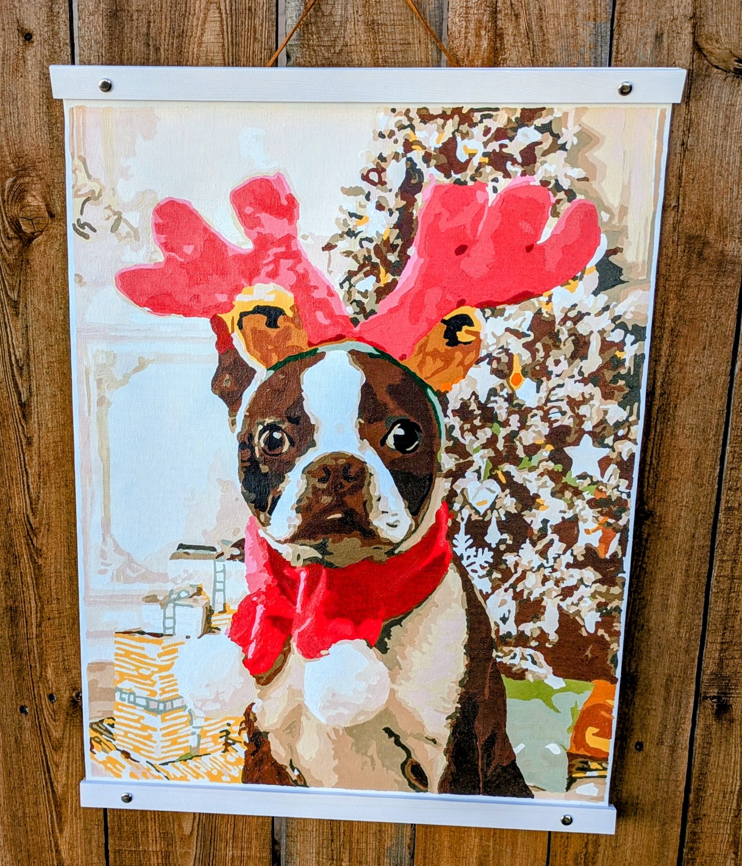 Rich colors, in permanent acrylic! This one-of-a-kind advanced paint-by-number design was meticulously hand-painted in acrylic paints on canvas by Diane Lemons. It comes unframed, but with wooden strips (top and bottom) to make hanging simple. If you decide to have it framed later, the artwork size is a standard 16” x 20”.
