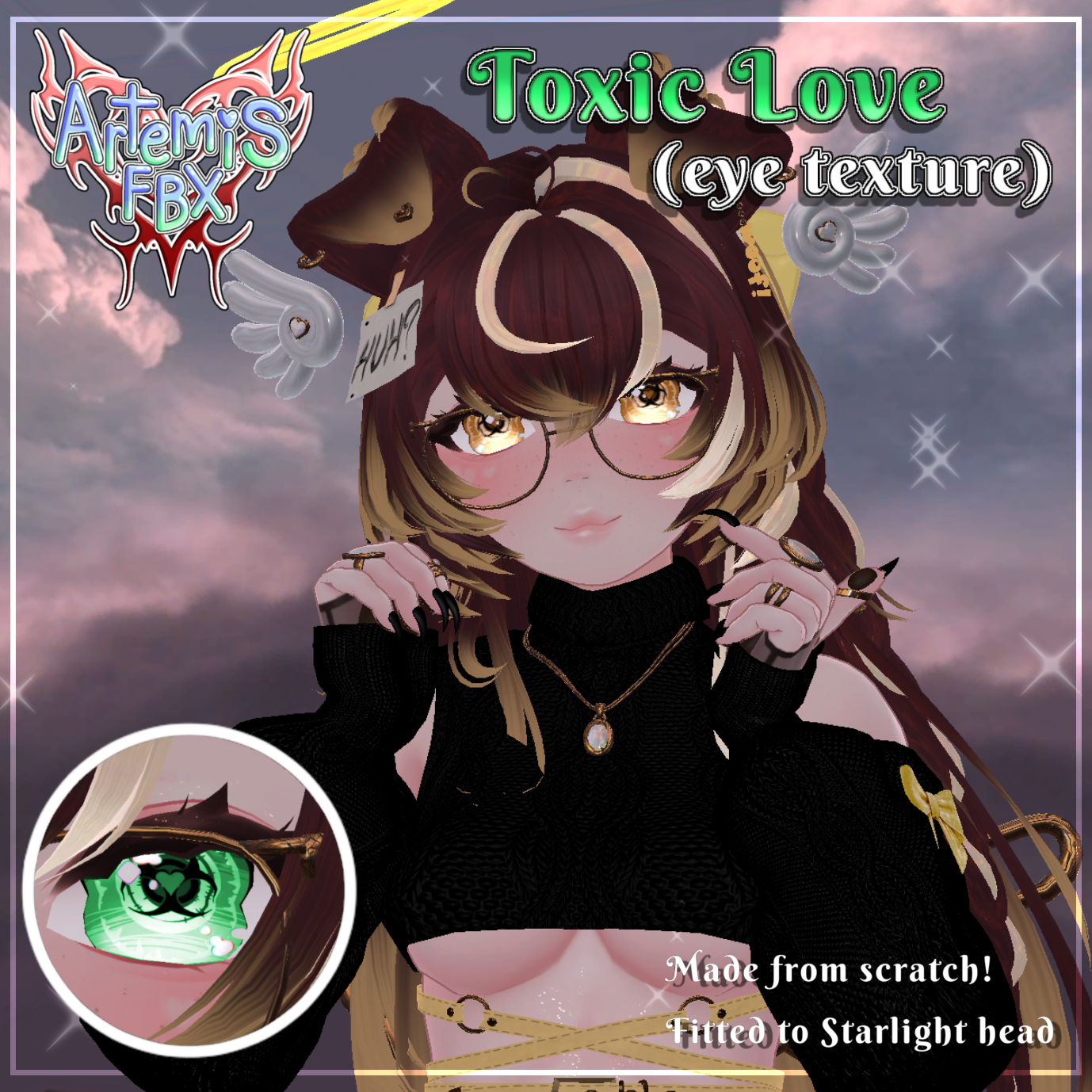 Eyes were supposed to be cyberpunk, but they give more hazard and toxic, so that's why it's call toxic love, and they are for free!