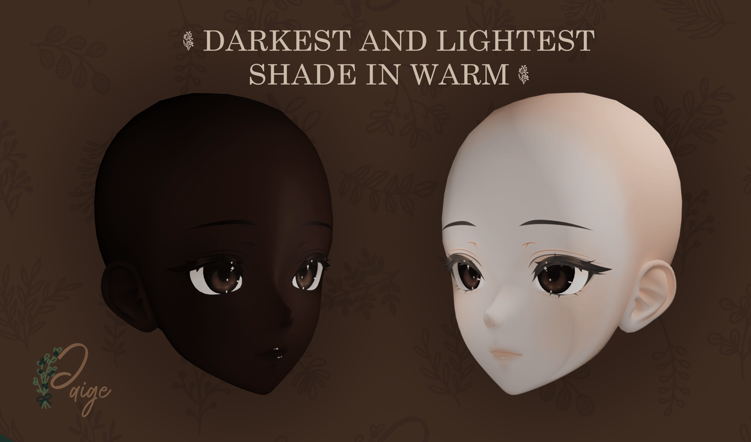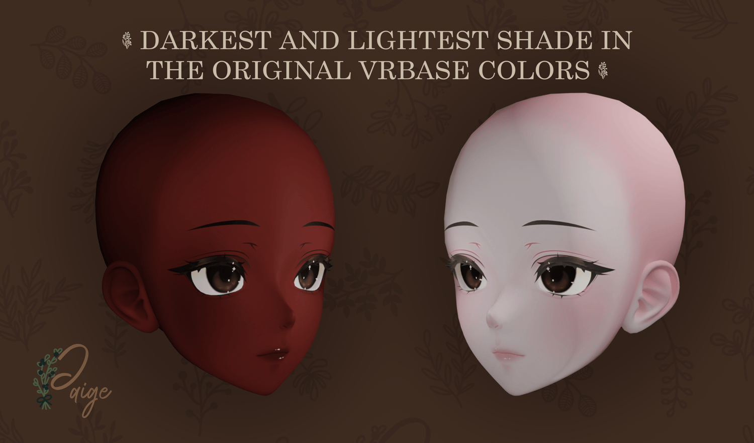 ⚠️ Note: Only the original VRBase skin tones are matched to a body base. The additional tone variants are not tied to a specific base, so colors may vary slightly. To help with blending, I’ve included a wide range of warm and cool tone options for a closer match.