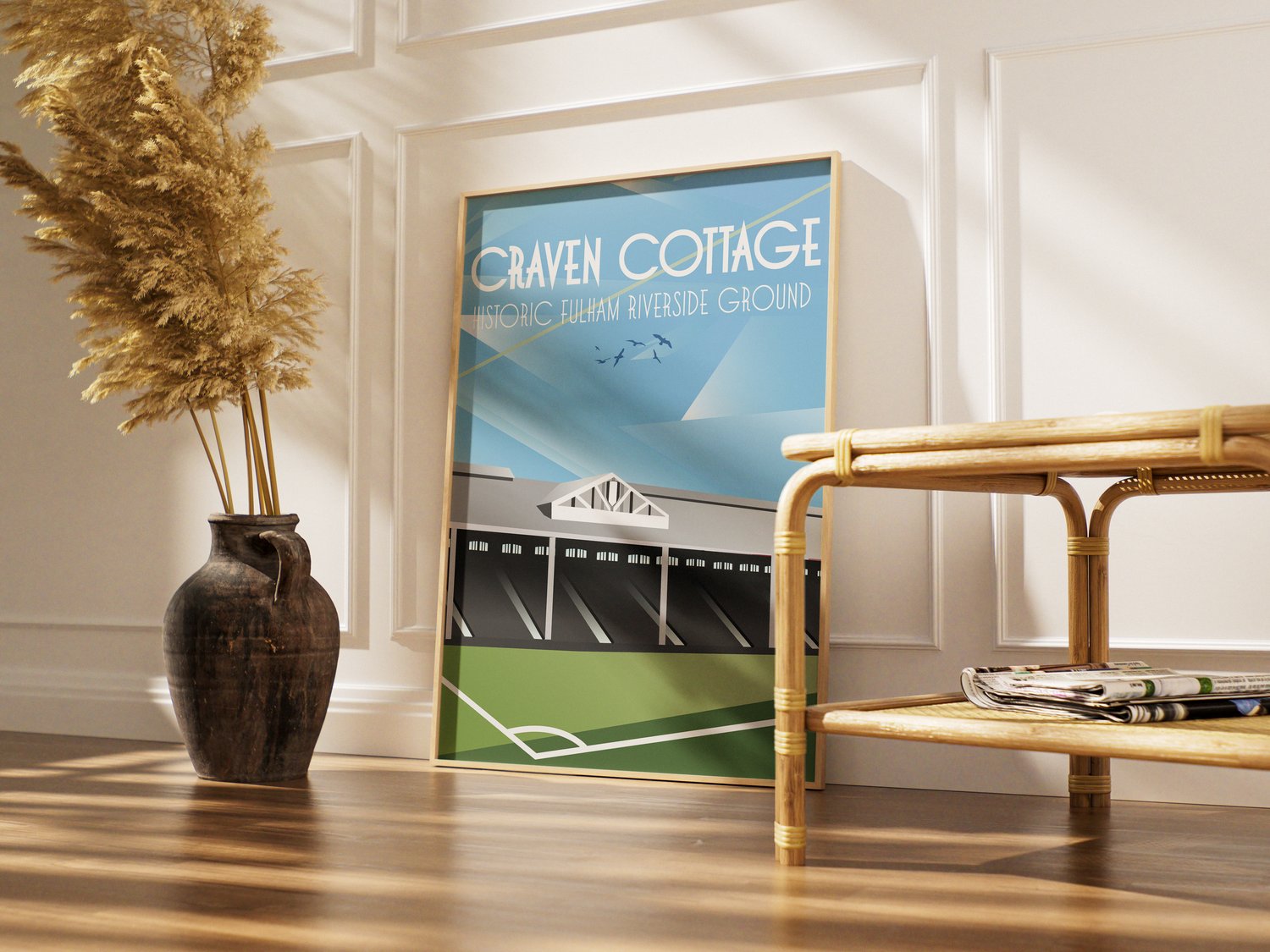 ✨ WHY YOU'LL LOVE IT ULTRA-VIBRANT ART: Expertly illustrated to highlight Craven Cottage's unique and beloved pavilion rooftop, sweeping dark stands, and bright blue sky — a charming tribute to one of English football's most characterful and historic grounds.