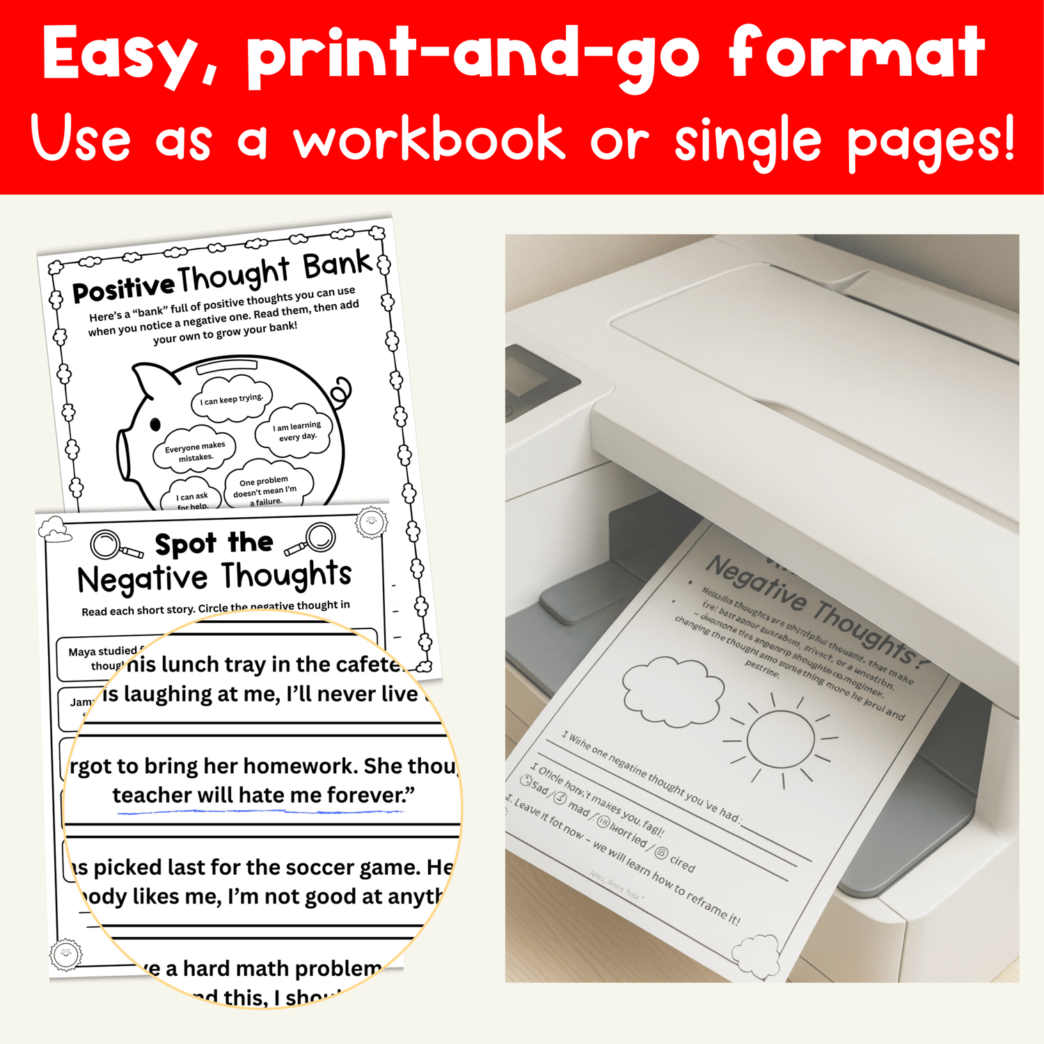 This printable workbook is filled with simple, kid-friendly activities that help students practice turning unhelpful thoughts into encouraging ones. You can use it as a full workbook or choose single pages for quick lessons or counseling sessions.