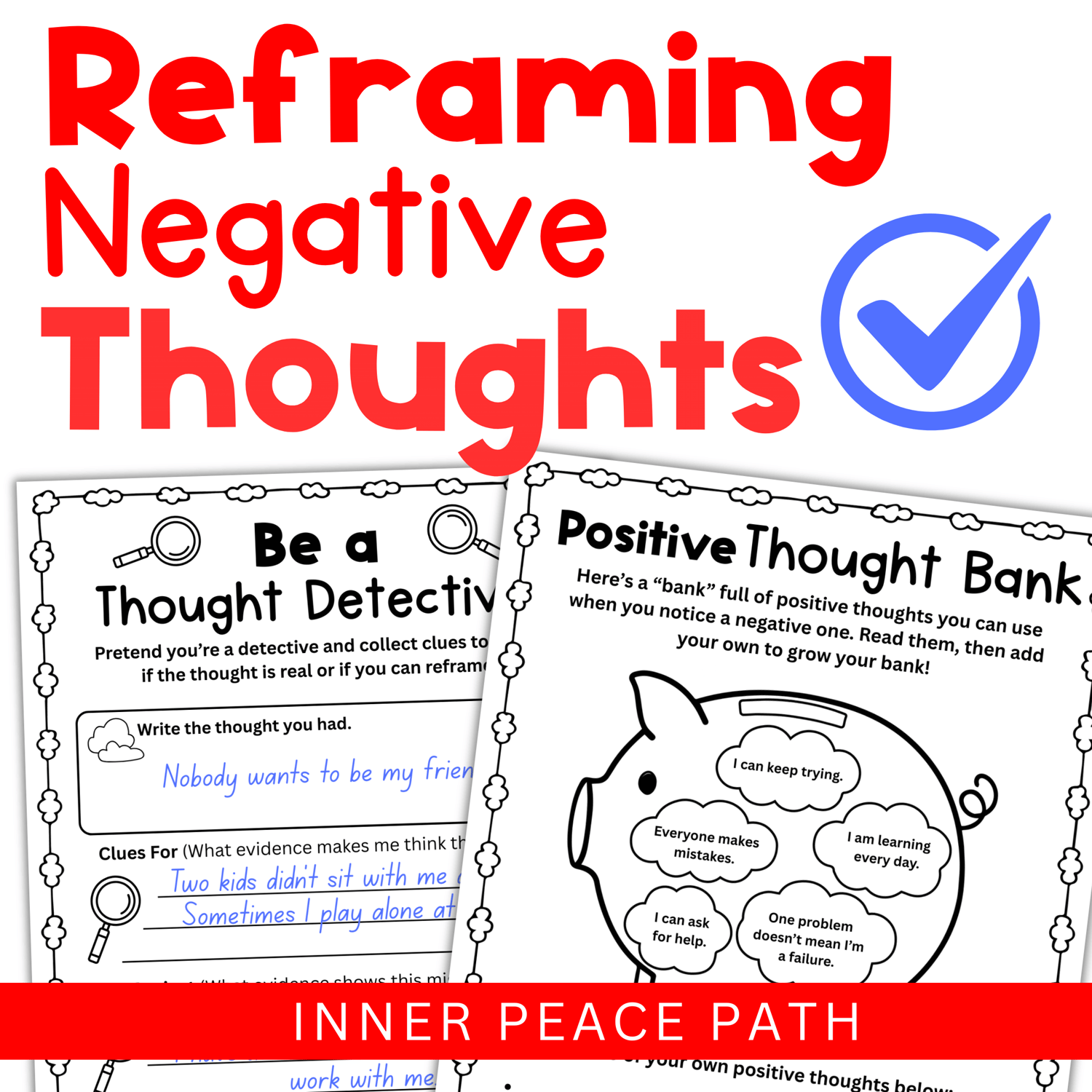 Reframing Negative Thoughts worksheets are a great way to teach positive thinking, self-talk, and social emotional learning (SEL).