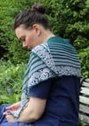 A beautiful crescent shaped shawl, it uses two 50g skeins of contrasting 4ply/fingering-weight yarn in a graduating effect. The garter stitch stripe sections knit up quickly and lead into the pretty lace section, which features simple ‘no-turn’ bobbles, and a beautiful bobble edging.