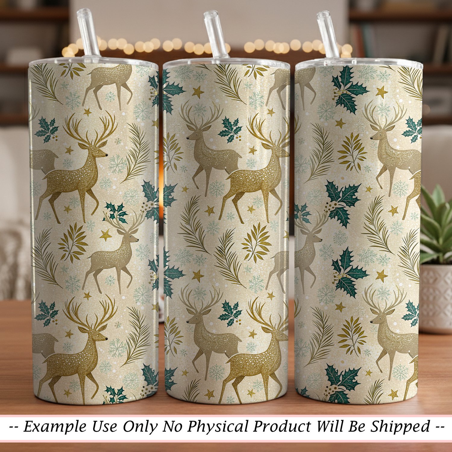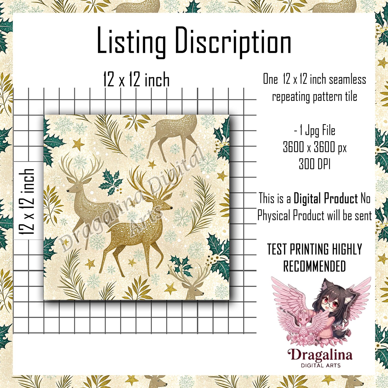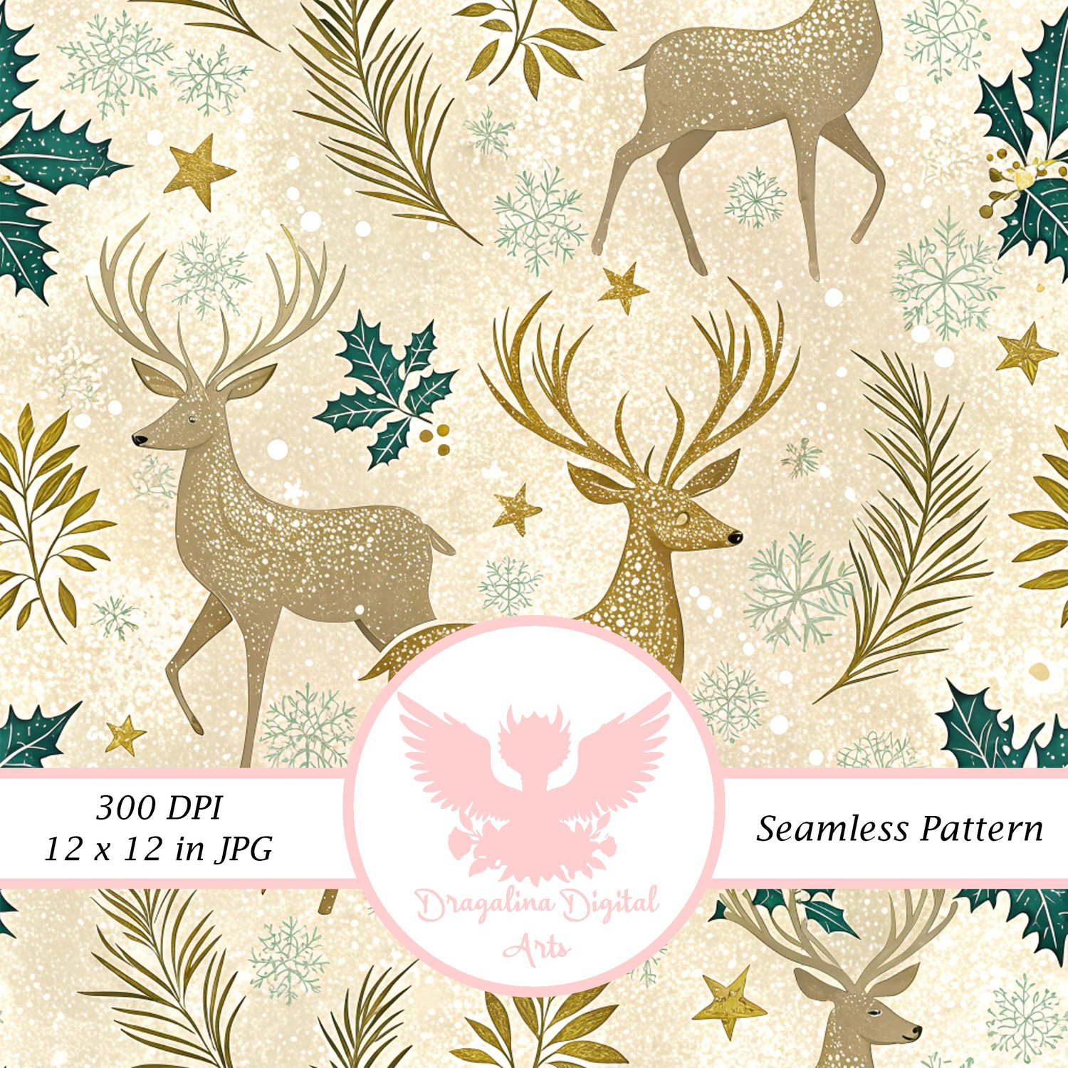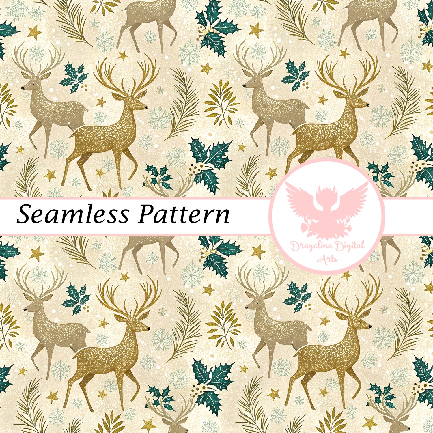 Gilded Winter Stag Seamless Pattern