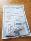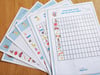 - fiches pour travailler les mots sans lever de crayon : une fiche pour écarter les lettres, une fiche avec lignage et des cartes de tracé glissé.