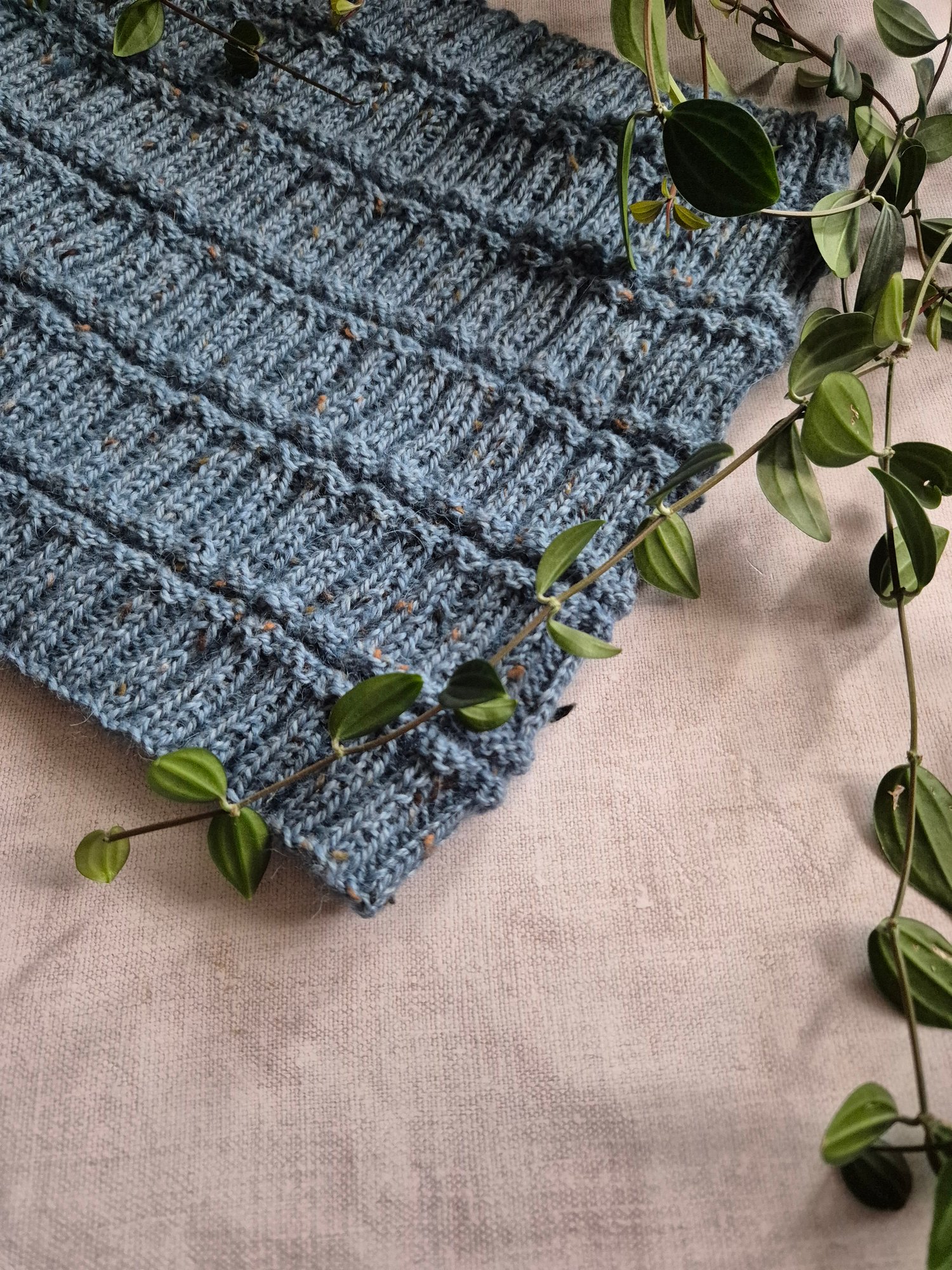 The stitch pattern is easy to memorise and soothing to work, making it a perfect project for peaceful evenings or audiobook sessions.
