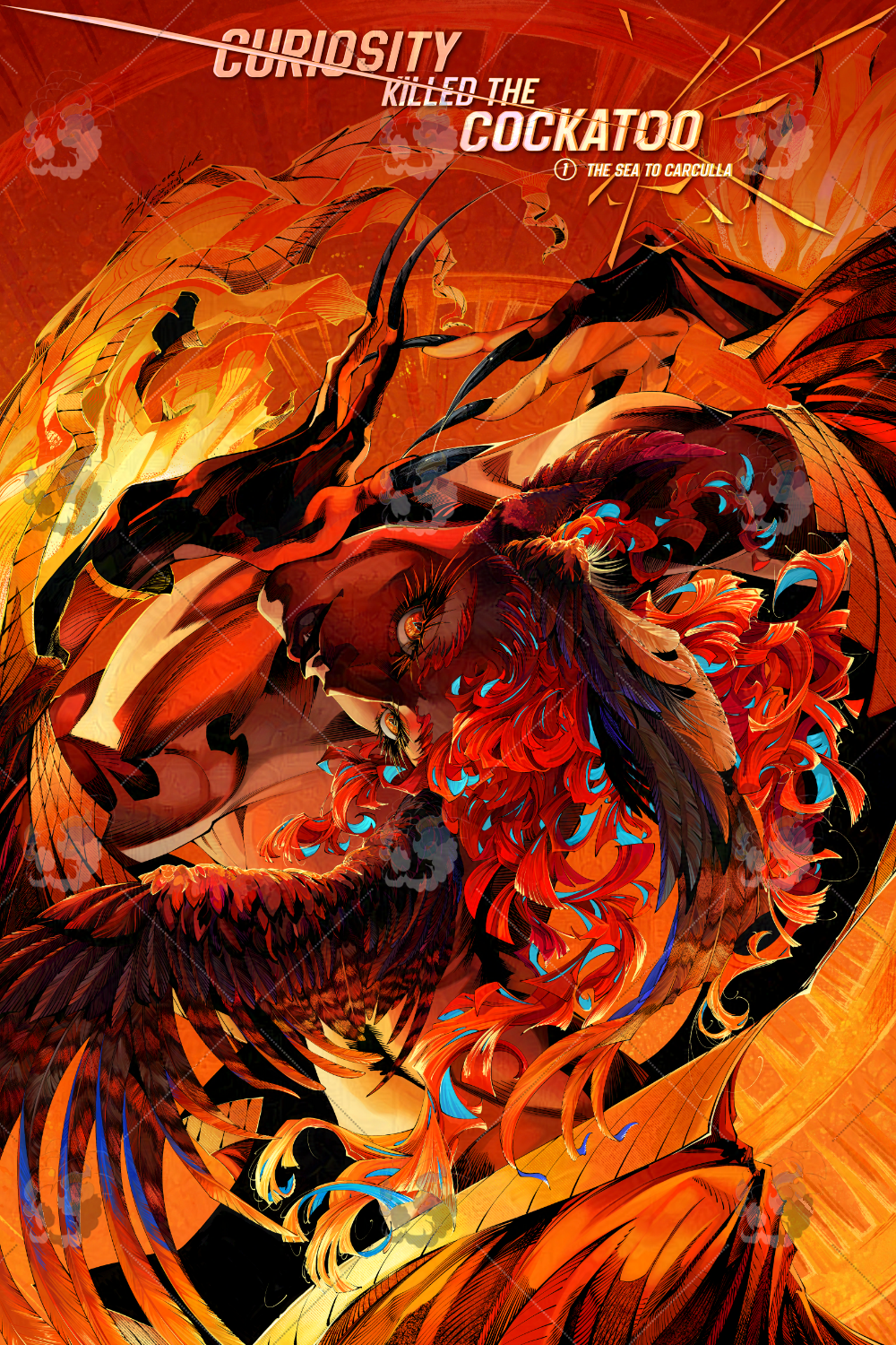 Here are the full resolution art files for the first cover of Curiosity Killed the Cockatoo, featuring the character Phaelon. Included are the full res (approx 6X9K pixels) pencils, inks and colours.
