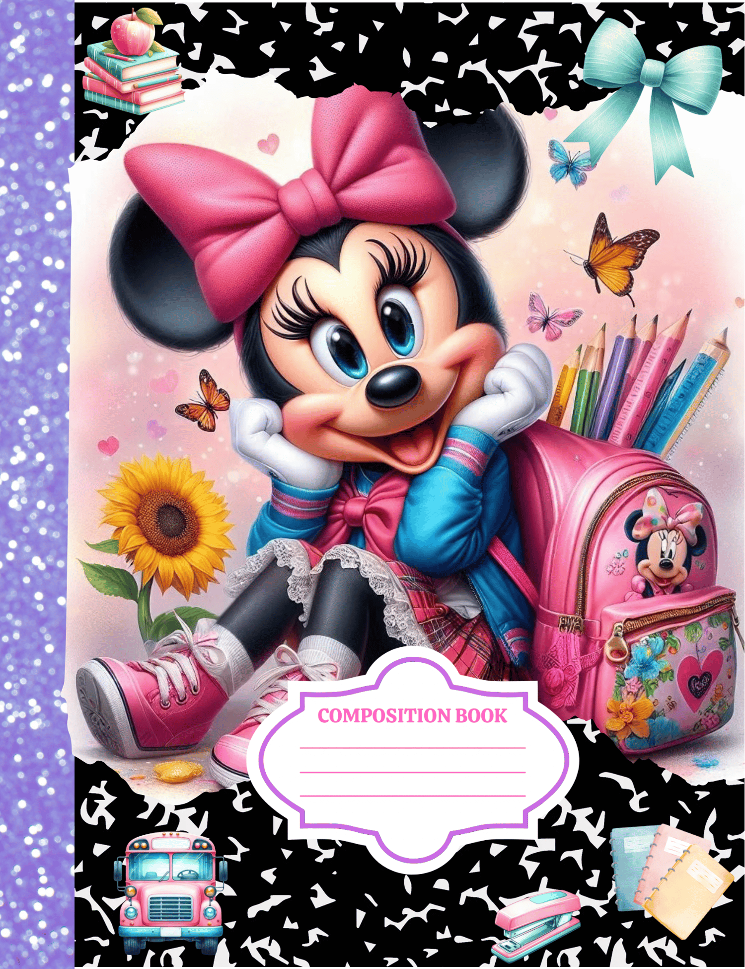 Bring joy and style to your school supplies with this adorable Minnie-inspired notebook cover bundle! This 4-pack features fun and girly character-themed designs perfect for little ones who love bold bows, pink backpacks, and back-to-school flair. Sized for standard 7.5x9.75” composition notebooks and fully editable in Canva—no Pro required!