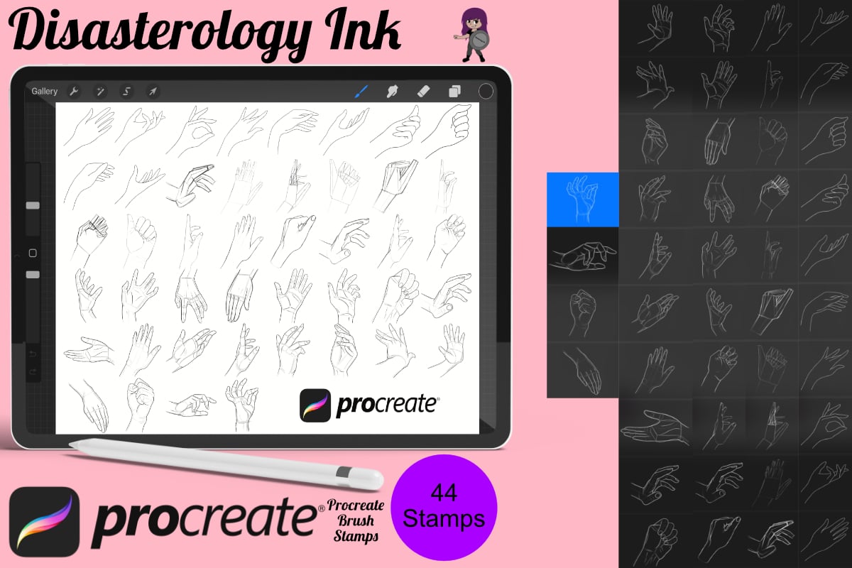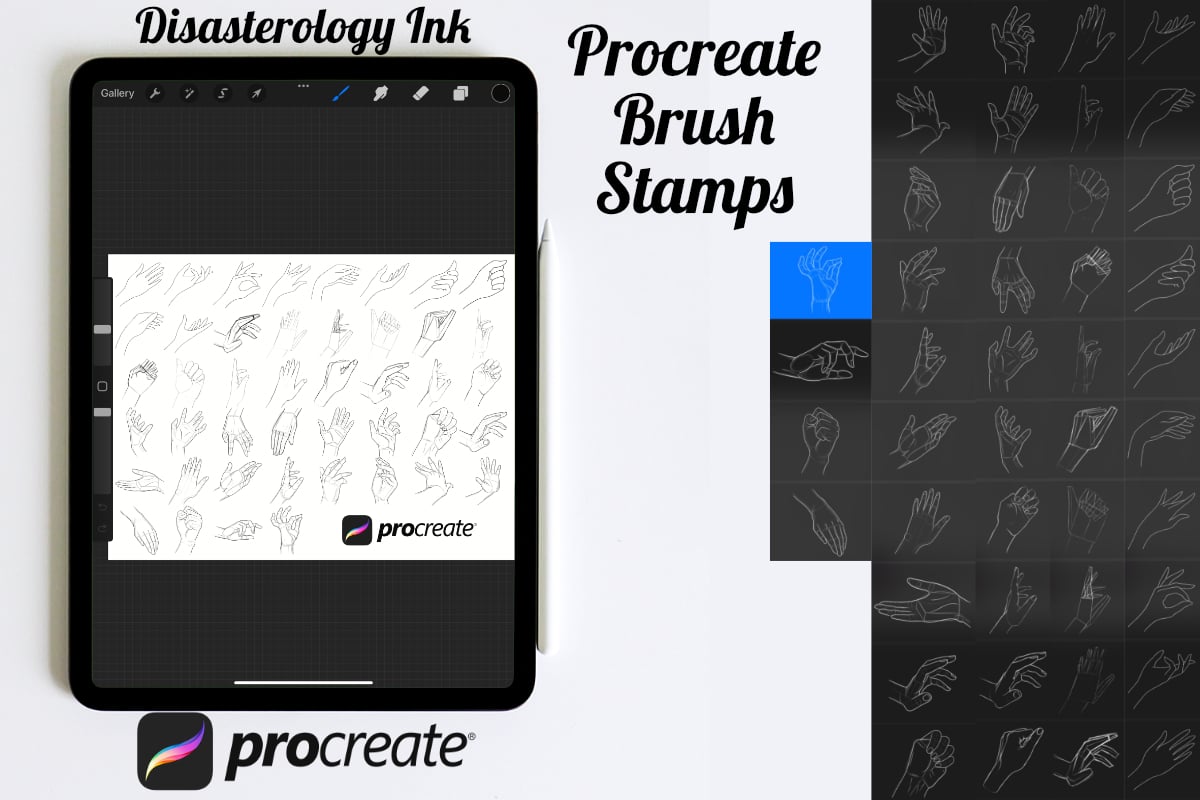 Human Portrait Hand Set 1 Procreate Brush Stamps, 44 Hand Stamps