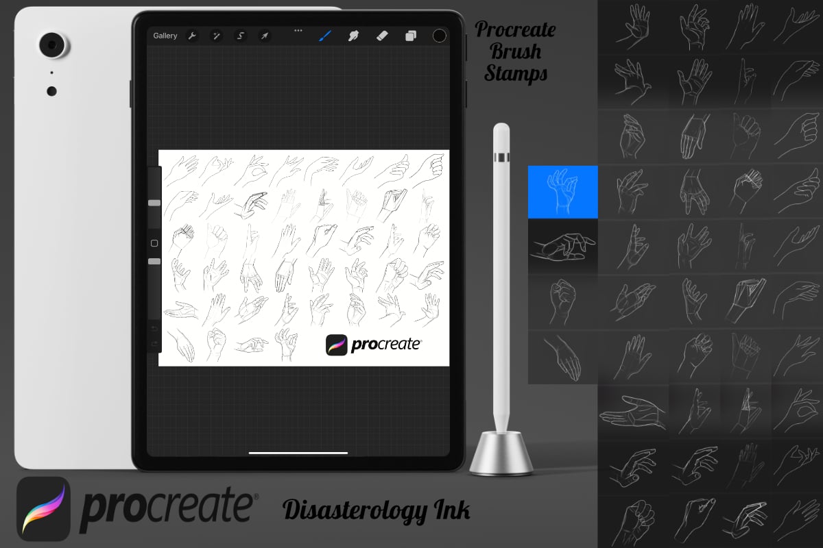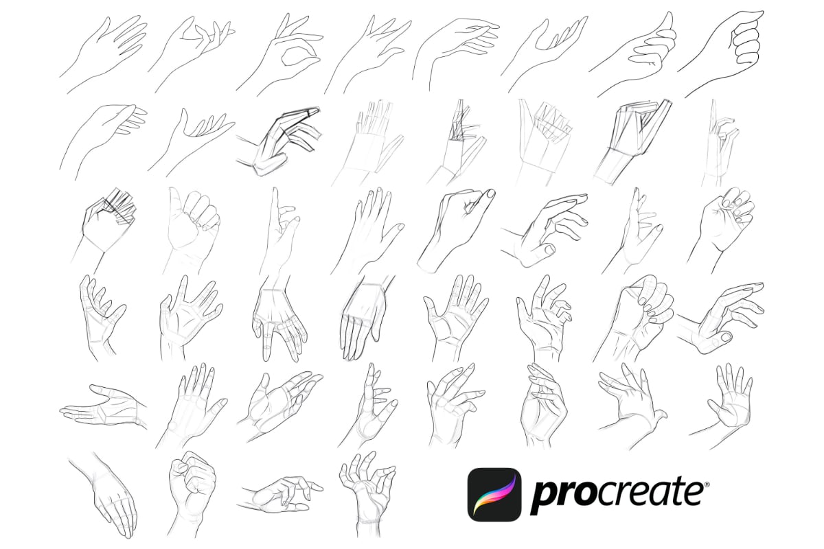 Human Portrait Hands Set 1 Procreate Brush Stamps, 44 Hand Stamps