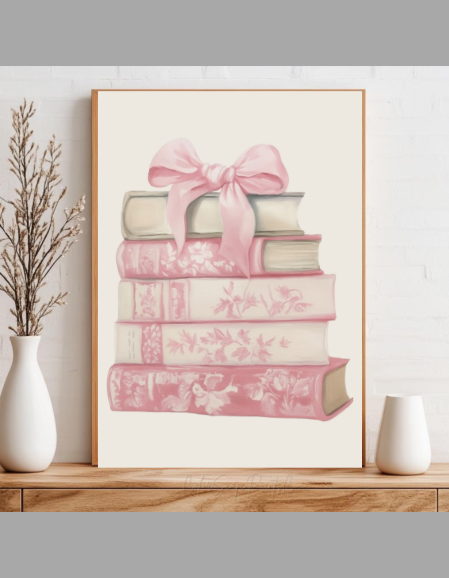 - Trendy Chinoiserie Flair: Drawing from timeless Eastern motifs with a modern pink coquette twist, this floral wall art captures the essence of romantic book stack illustrations, evoking quiet mornings with tea and novels.