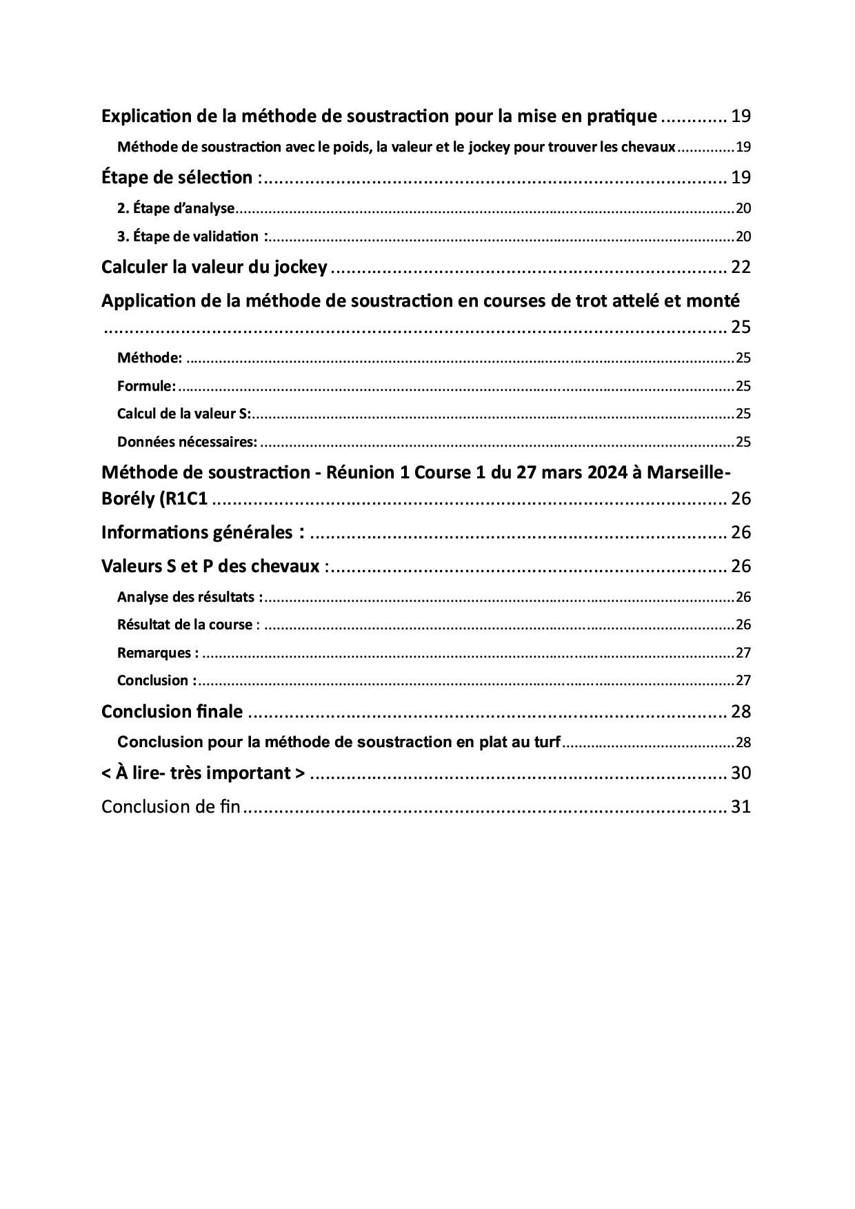 La méthode de soustraction est une méthode utile et efficace pour estimer les chances d'un cheval dans une course de plat et trot puis obstacle. Elle est simple à comprendre et à mettre en œuvre, et elle peut être utilisée pour analyser une grande variété de courses. Cependant, il est important d'être conscient des limites de la méthode de soustraction et de l'utiliser en conjonction avec d'autres méthodes d'analyse pour obtenir les meilleurs résultats