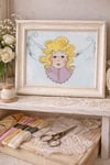 This is a beautiful printable cross stitch pattern of little girl angel with blond hair.
