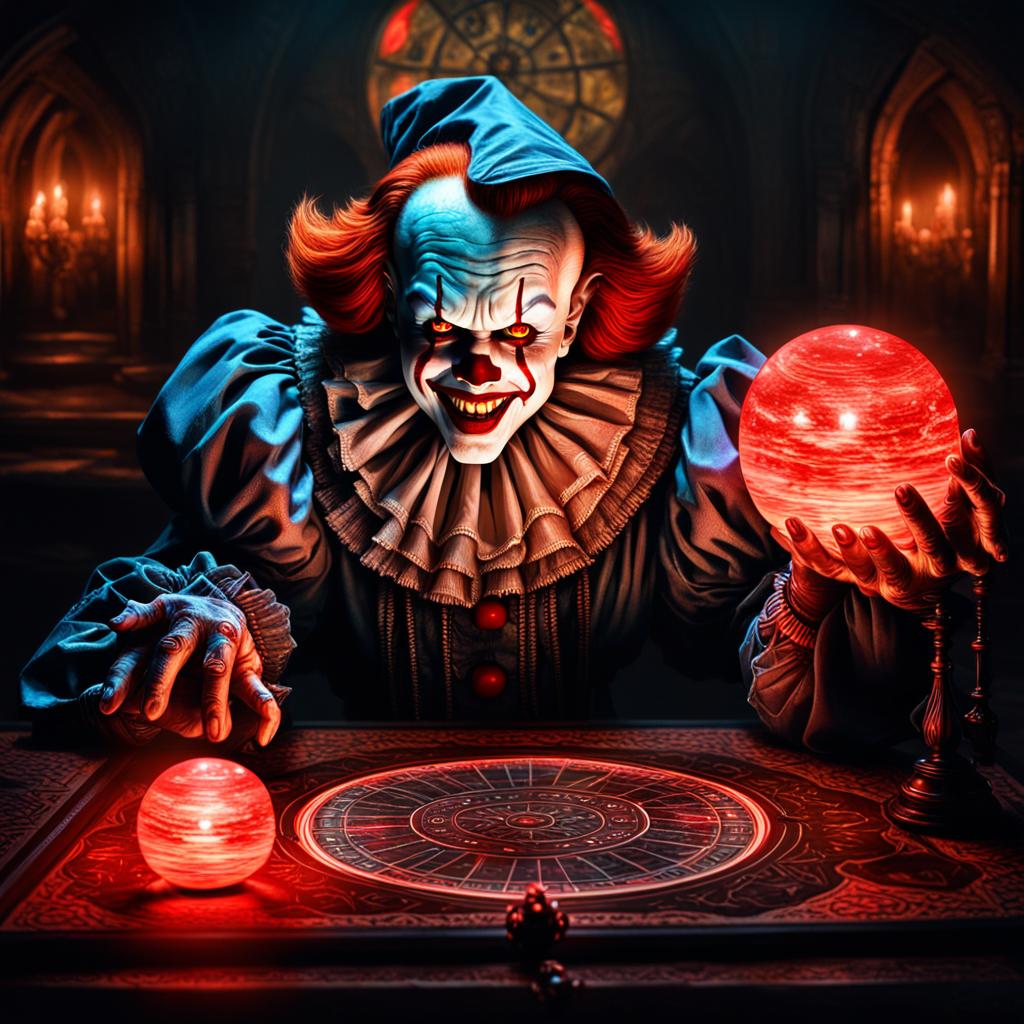 Dive into the sinister world of "Dark Evil Pennywise," a mesmerizing digital art piece that captures the malevolent essence of Stephen King’s iconic clown. Created with unparalleled detail and a hauntingly vivid color palette using NightCafe, this artwork brings to life the chilling presence of Pennywise in a way that is both captivating and unsettling.