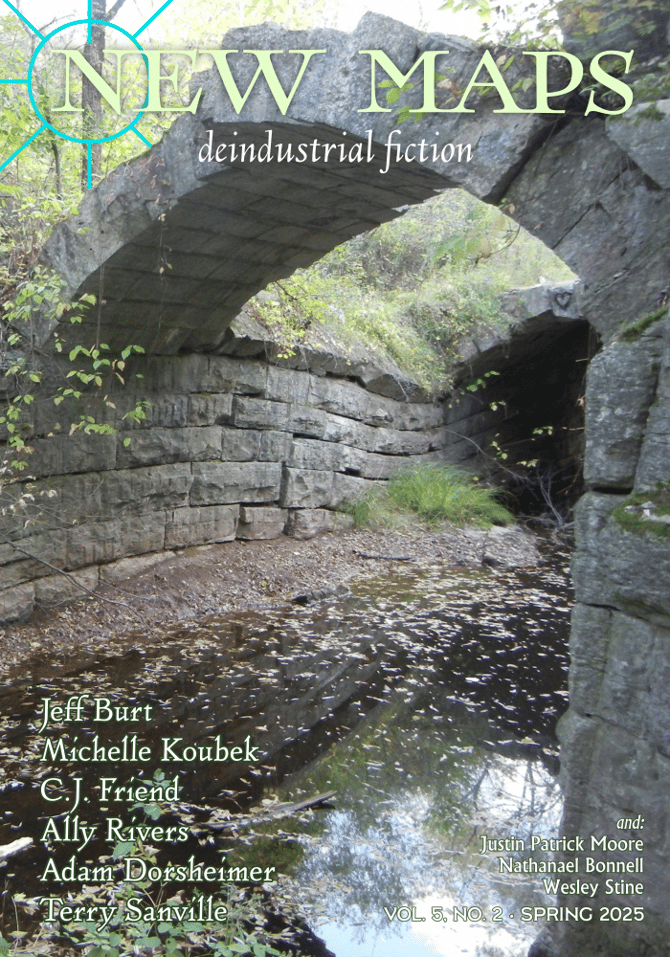 A global diet of less resources doesn’t mean everyone will live with less: as long as there’s been money, there have been those with lots of it and those without. In this issue we meet some of those at the extremes. A nervous new executive attempting to impress his new colleagues, and a brother and sister whose last modest wealth has just been shredded by a tornado. Two children trying to get their mother to a hospital although cars are the preserve of a wealthy few, and an oilman who jumps on the latest technological attempt at making the rich immortal. And the opening of a novella that follows a clan of poor marsh farmers in the shadow of high-life condo perches. Find as well the story of a husband’s promise with unforeseeable ramifications, and poetry, letters, and two new columns, here in the latest New Maps.