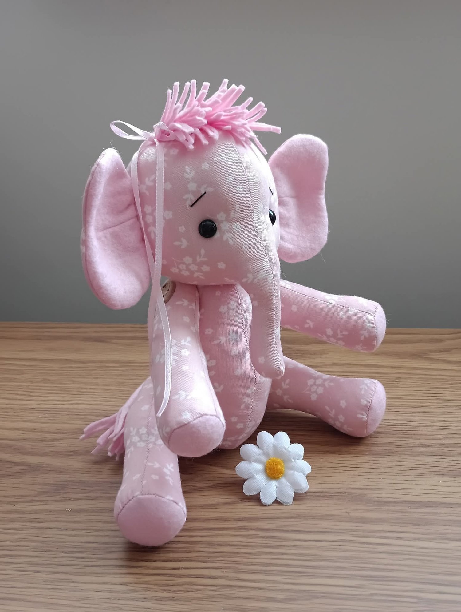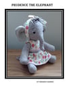 Prudence is a gorgeous little elephant that standing 12inch tall, she is machine stitched so can be made in any fabric, the clothes Prudence. is wearing are included in the pattern