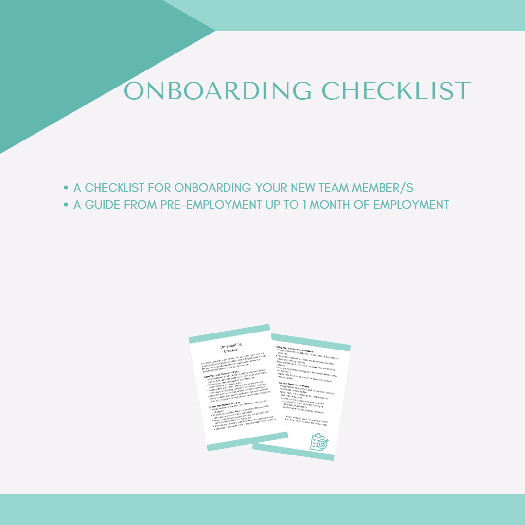A checklist to prepare for all the key tasks and activities to happen from prior to the employee joining the team up until 1 month with your business.