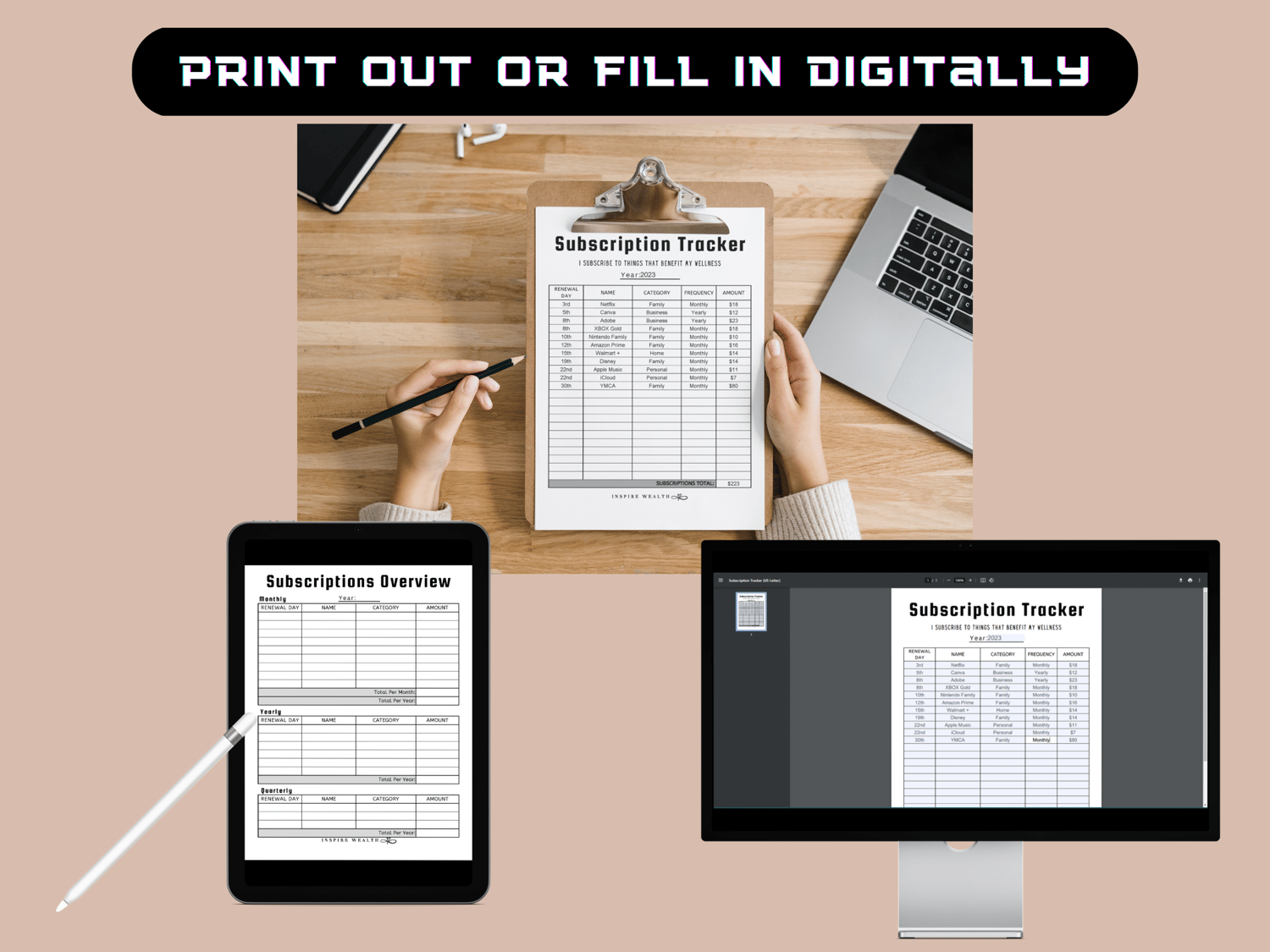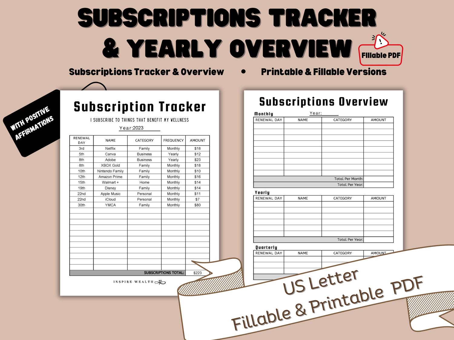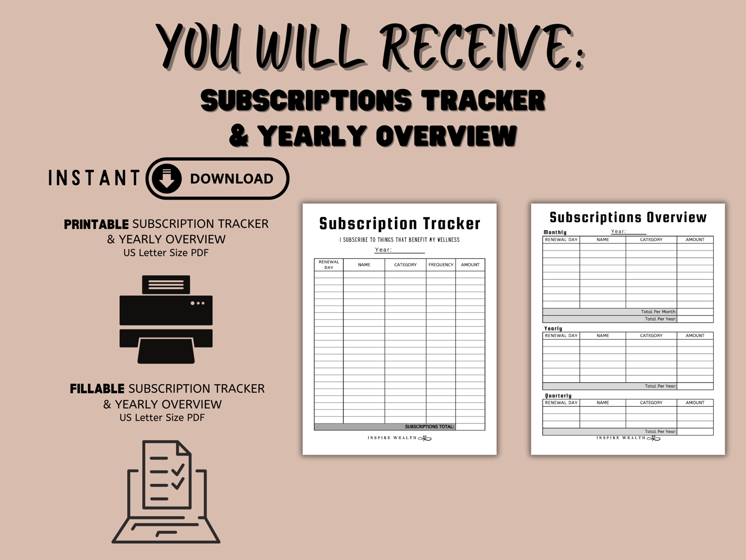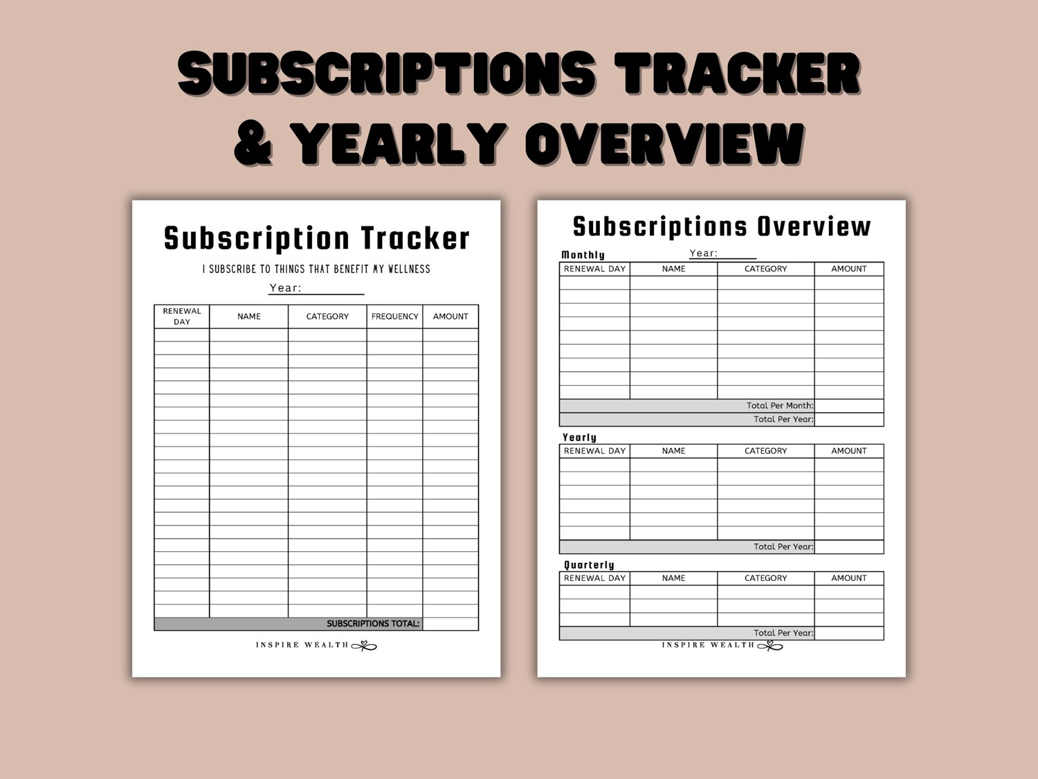 I've crafted this Subscription Tracker Digital Download to help you get a clear view of how much is going to subscriptions monthly and yearly. Your visit is much appreciated — here's to your journey of financial wellness!