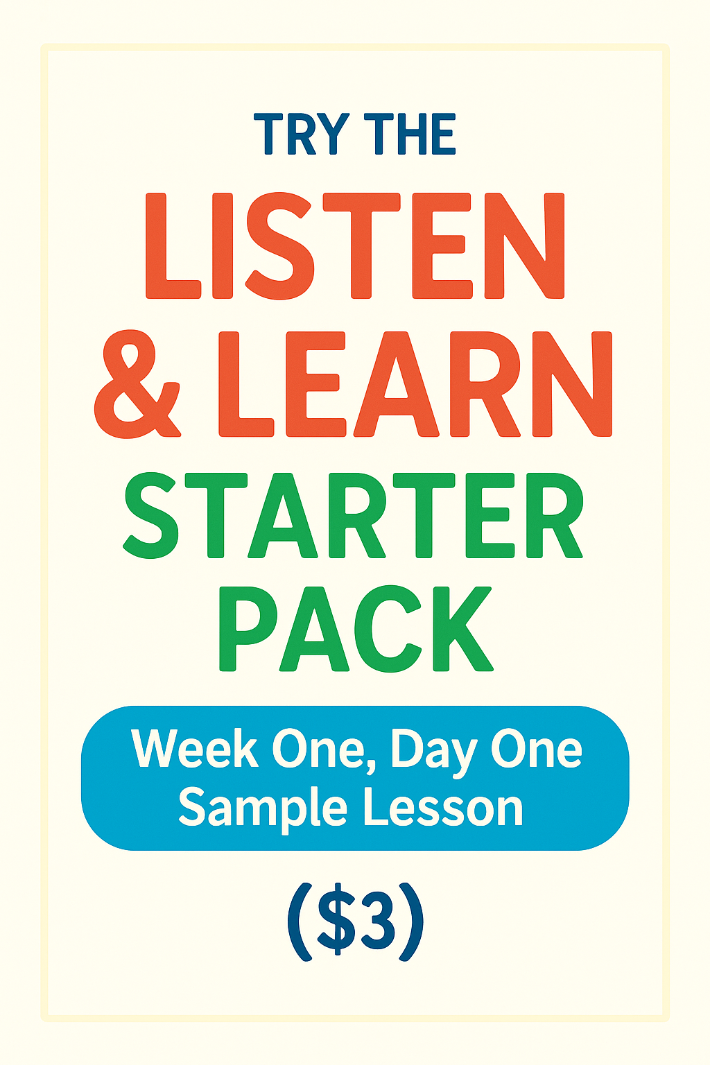 Get a complete sample lesson from our Week One, Day One bundle — designed for early learners just getting started. This download includes: