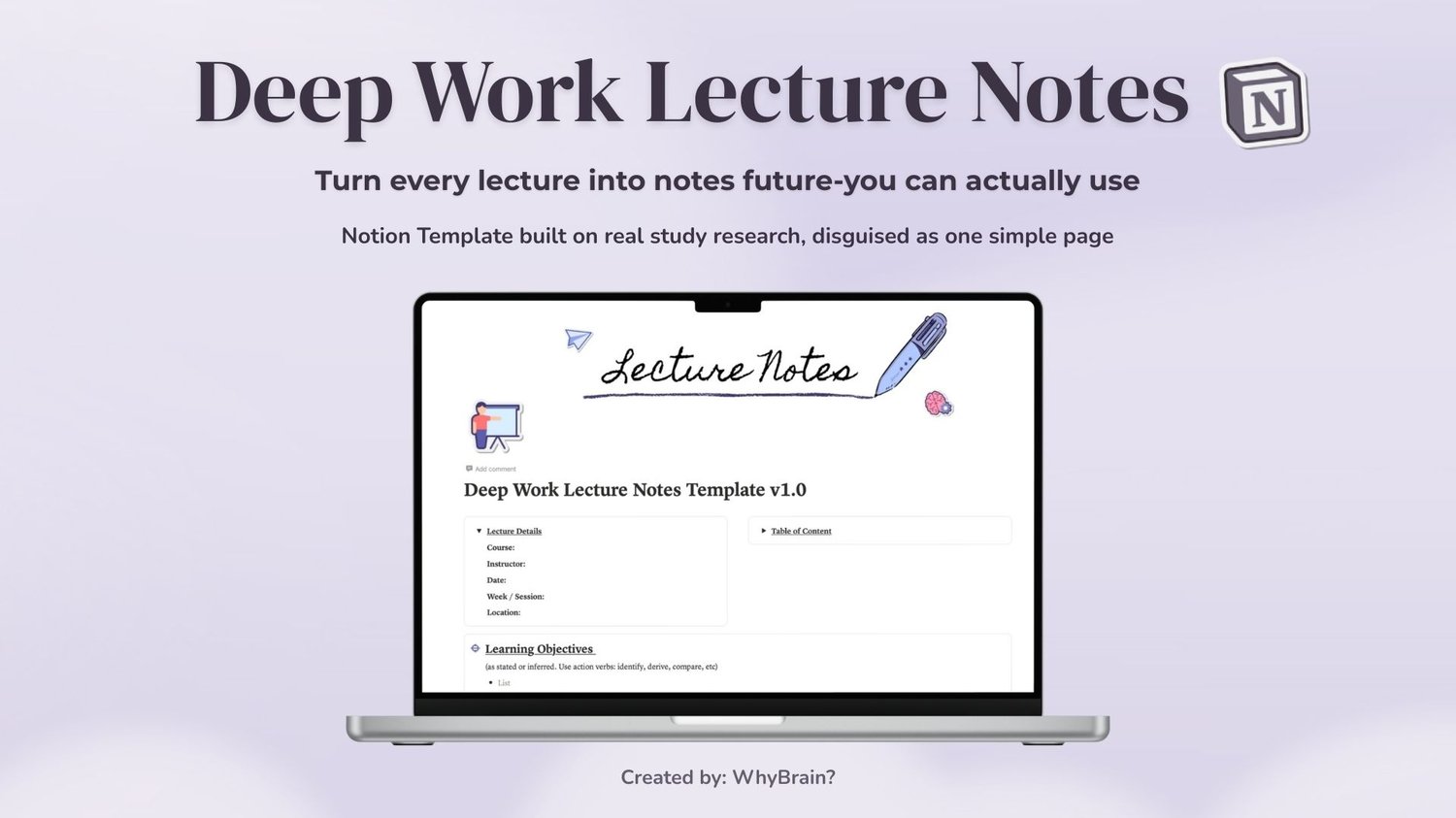 The Deep Work Lecture Notes template gives a Notion page that helps you capture what happens, understand it, and actually use it later. A structure that works with how your brain actually learns.