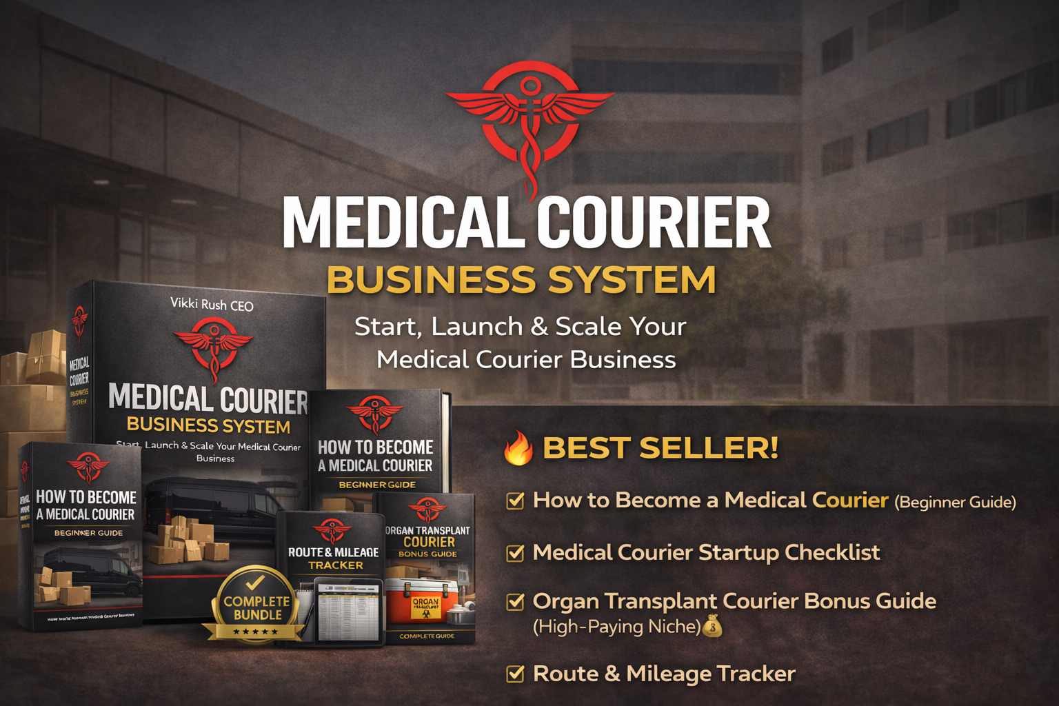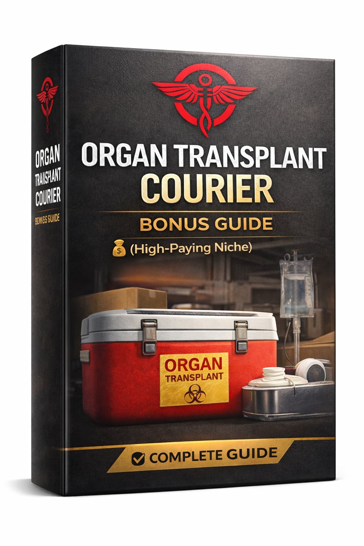 Includes everything you need to launch your courier career: beginner guide, startup checklist, printable mileage tracker, and organ delivery bonus training