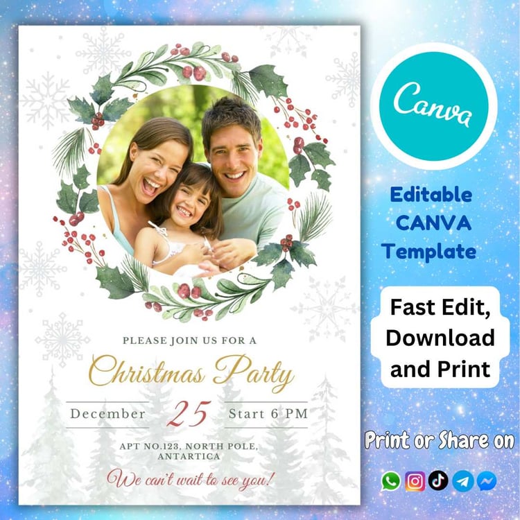 This is a digital file that you can download instantly after purchase. You can edit it directly in your web browser using Canva, which is a free customizable template editor. You will receive a link to edit your digital design and no printed items will be shipped. You can edit it using your computer, laptop or phone without any software required