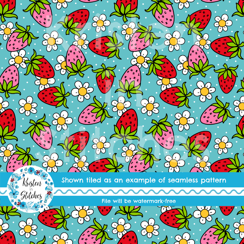 Subtle Strawberries FDT Fuck Trump Floral Seamless Pattern